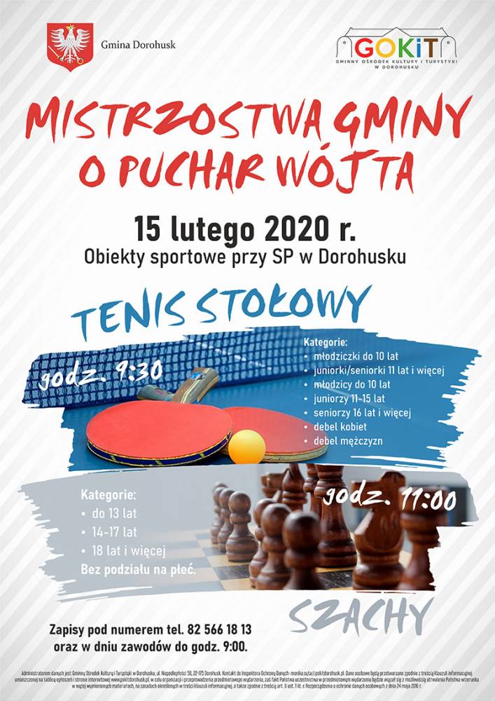 W sobotę, 15 lutego 2020 r. w Hali Widowiskowo-Sportowej przy Szkole Podstawowej w Dorohusku odbyły się Mistrzostwa Gminy Dorohusk w tenisie stołowym o Puchar Wójta.