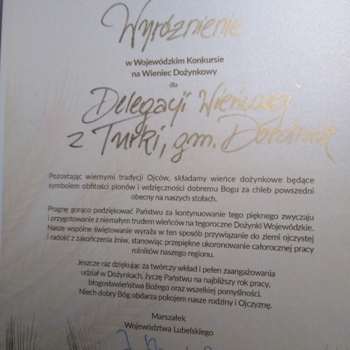 Z wyróżnieniem za wieniec dożynkowy wróciły Panie z Koła Gospodyń Wiejskich w Turce z Dożynek Wojewódzkich, które odbyły się w minioną niedzielę, 11 września w Radawcu.
