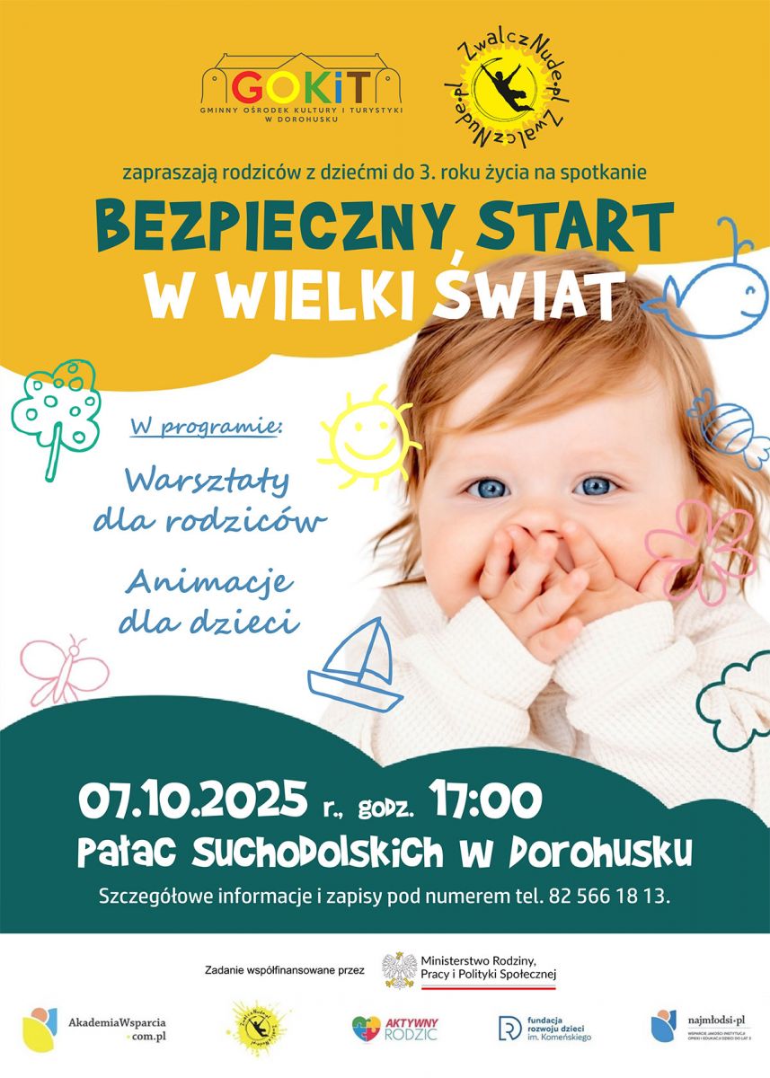 We wtorek, 7 października br. w Pałacu Suchodolskich w Dorohusku odbyło się spotkanie dla rodziców i dzieci pod hasłem „Bezpieczny start w wielki świat”. Wydarzenie zostało zorganizowane przez Fundację Zwalcz Nudę we współpracy z Gminnym Ośrodkiem Kultury i Turystyki w Dorohusku.