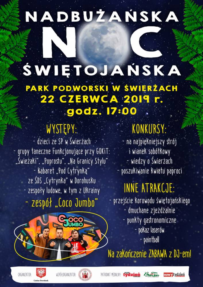 W sobotę, 22 czerwca 2019 r. w Parku Podworskim w Świerżach w odbyła się „Nadbużańska Noc Świętojańska” - słowiańskie święto ognia i wody, związane z letnim przesileniem i obchodzone w czasie najkrótszej nocy w roku.