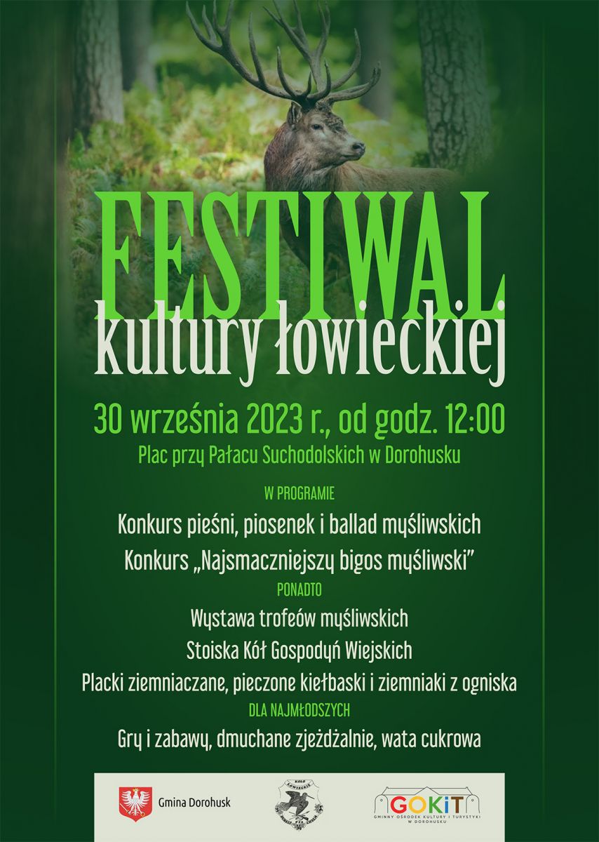 W minioną sobotę, 30 września br., na placu przy Pałacu Suchodolskich w Dorohusku odbył się „Festiwal Kultury Łowieckiej” zorganizowany przez Gminę Dorohusk, GOKiT w Dorohusku oraz Koło Łowieckie nr 82 „Dubelt” w Chełmie.