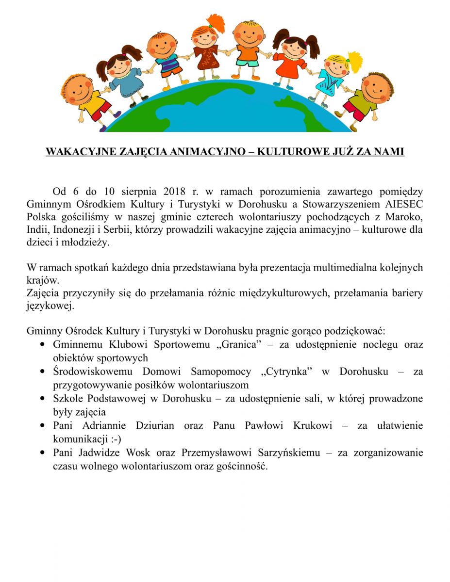 Serdecznie zapraszamy dzieci i młodzież na wakacyjne zajęcia animacyjno-kulturowe prowadzone przez wolontariuszy z Indii, Maroko, Indonezji i Włoch.