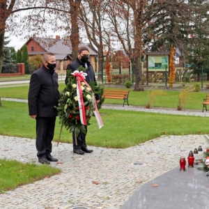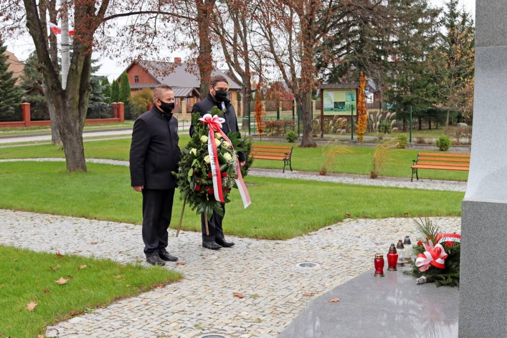 Z okazji Narodowego Święta Niepodległości Wójt Gminy Dorohusk – Wojciech Sawa oraz Przewodniczący Rady Gminy – Mieczysław Gałecki złożyli wieniec pod Pomnikiem 100-lecia Niepodległości RP.