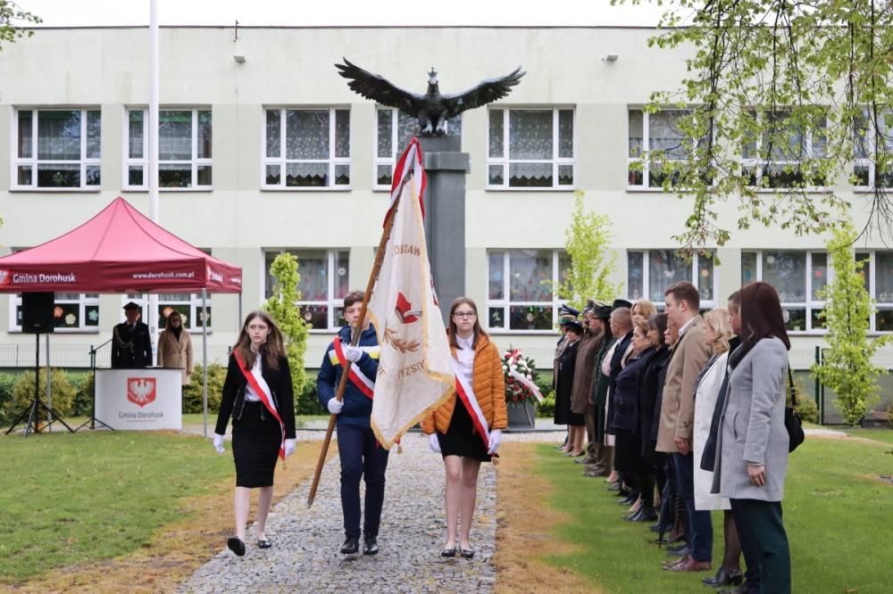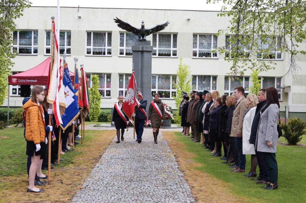 Tegoroczne obchody Święta Konstytucji 3 Maja w gminie Dorohusk rozpoczęły się pod pomnikiem 100-lecia Niepodległości RP, gdzie po odśpiewaniu Mazurka Dąbrowskiego, delegacje służb mundurowych, przedstawicieli samorządu oraz placówek oświatowych i organizacji z terenu gminy Dorohusk złożyły wieńce i kwiaty.