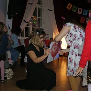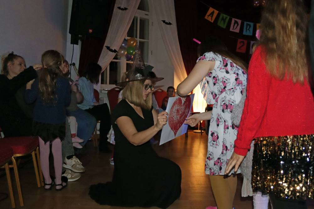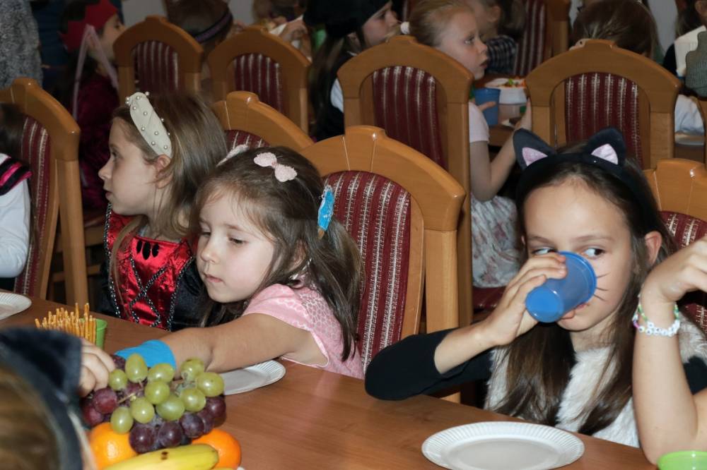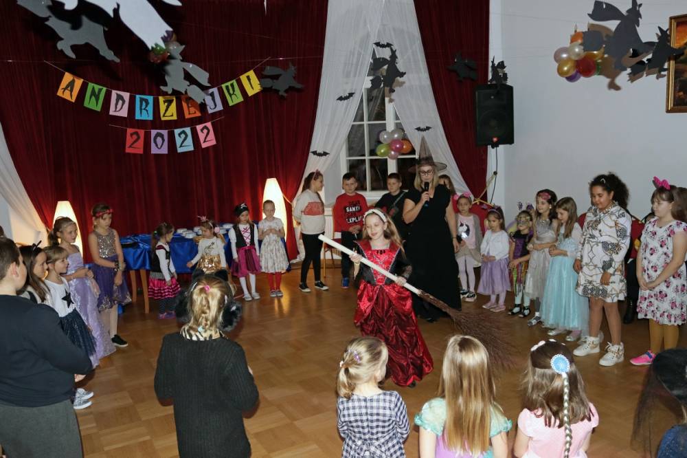 Wieczór był pełen ciekawych gier, wróżb i dobrej zabawy. Dzieci przygotowały na tę okazję specjalne przebrania i chętnie brały udział w zaplanowanych atrakcjach. Największym powodzeniem cieszyły się tradycyjnie wróżby.
