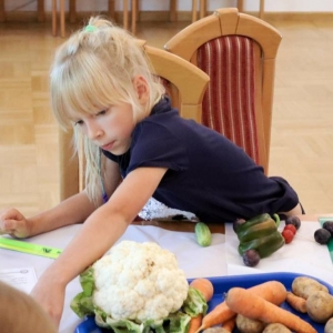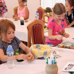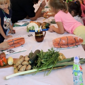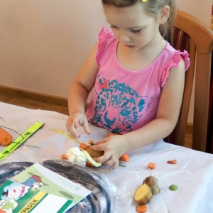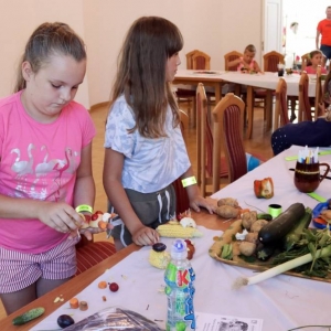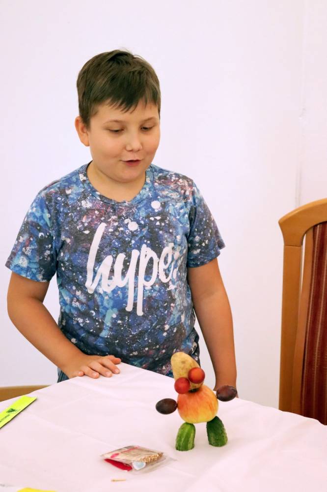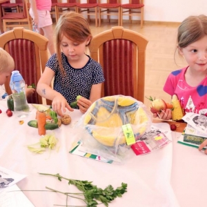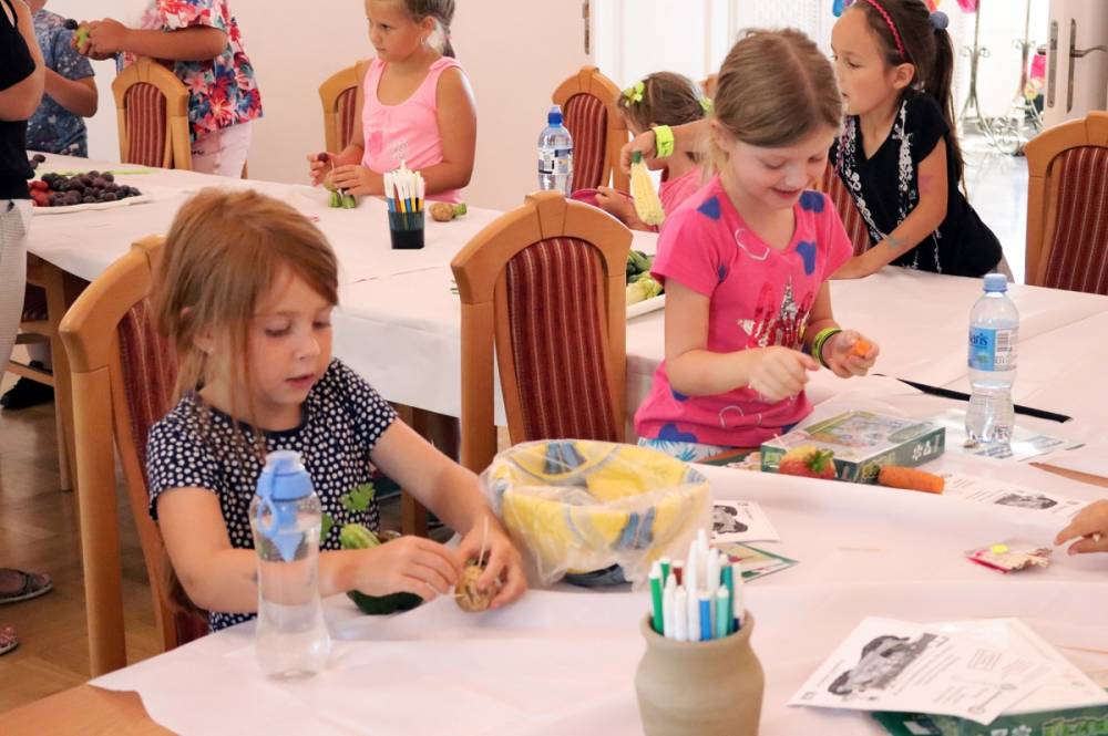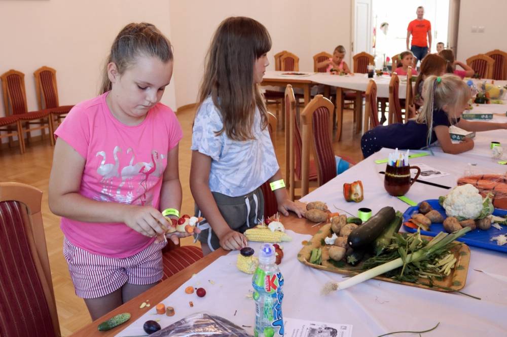 Następnie odbyły się warsztaty, podczas których uczestnicy wykonywali owocowo-warzywne stworki.