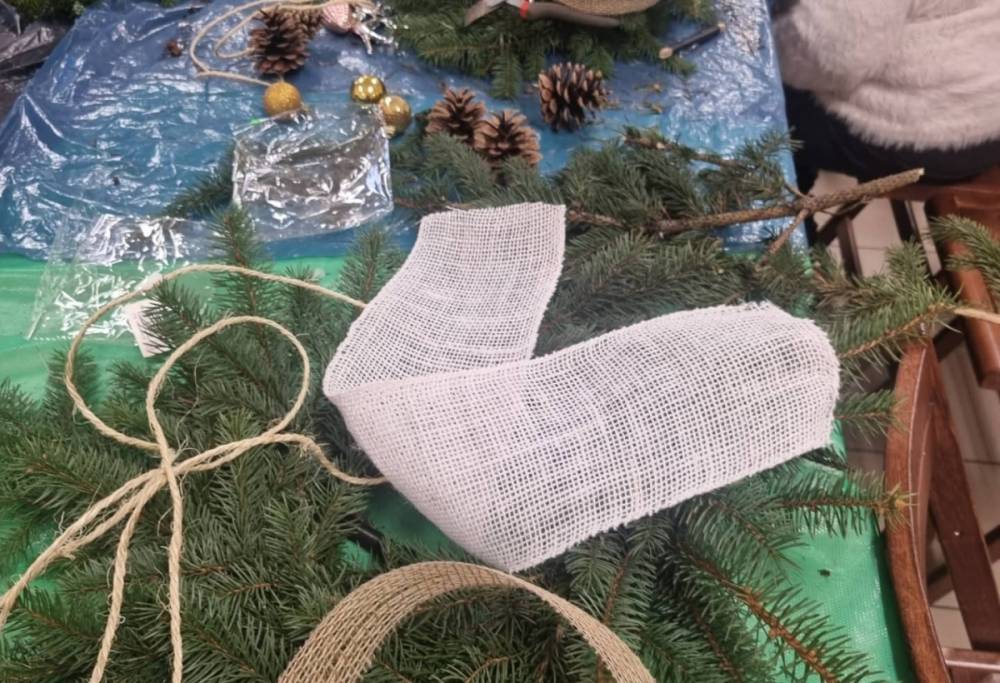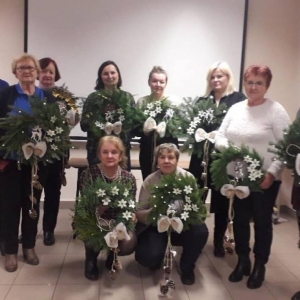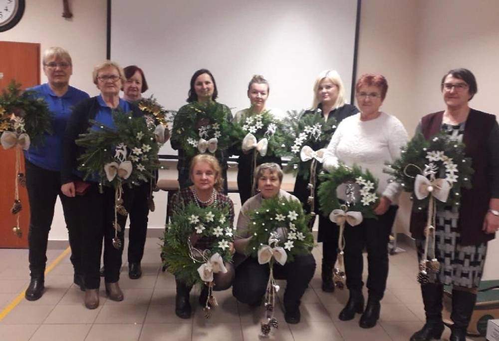 Podczas spotkania panie uczyły się robić wieńce bożonarodzeniowe.