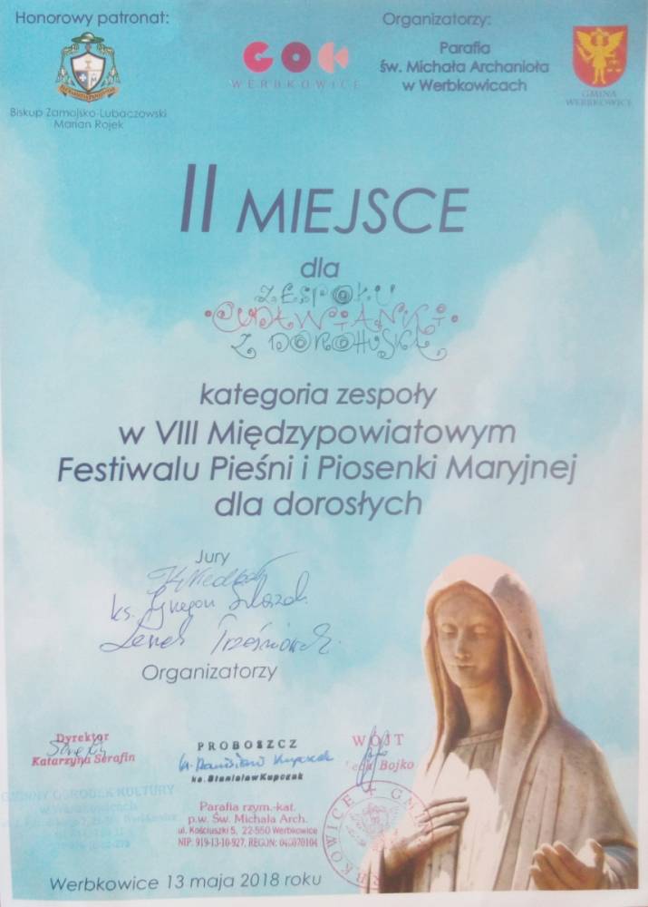 W dniach 12-13 maja 2018 r. w Werbkowicach, powiat hrubieszowski odbył się VIII Międzypowiatowy Festiwal Pieśni i Piosenki Maryjnej - Werbkowice 2018.