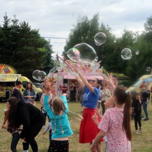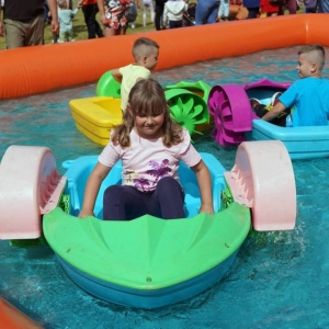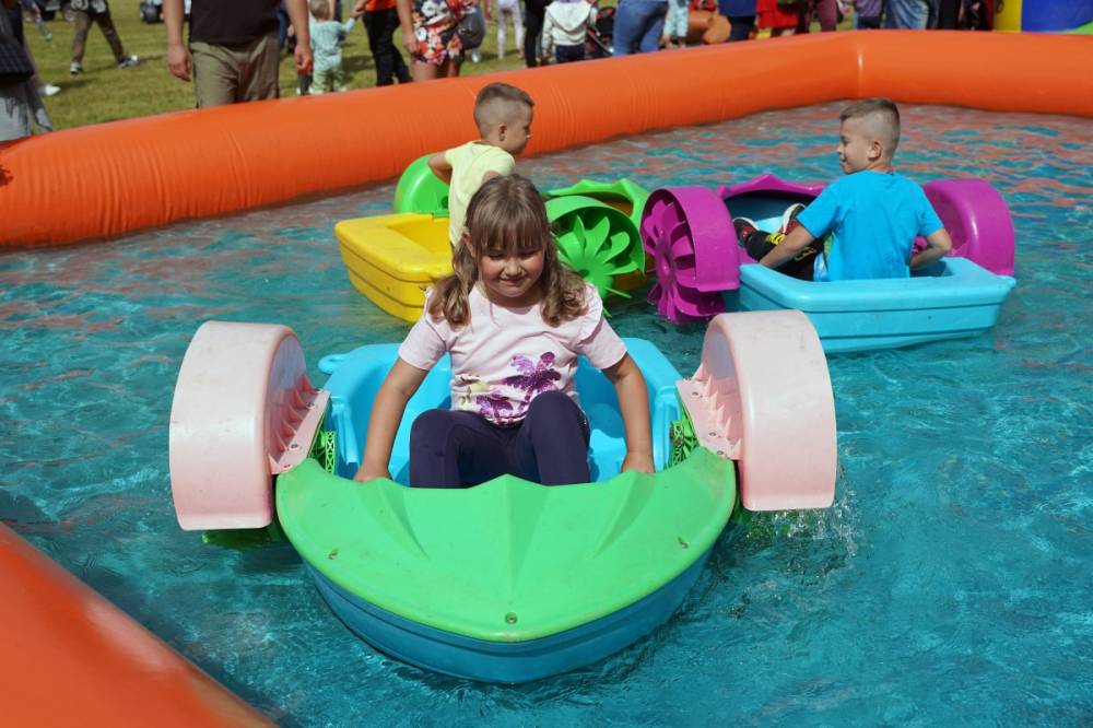Przez cały czas trwania imprezy czynny był park dmuchańców, elektryczne samochodziki, basen z rowerkami wodnymi oraz wiele innych atrakcji, tj. kolorowe warkoczyki, malowanie buziek, brokatowe tatuaże, bańki mydlane. Dzieci i rodzice chętnie brali udział w zabawach tanecznych, zawodach sportowych oraz przeciąganiu liny. Spore zainteresowanie wzbudził biały pluszowy miś, który chętnie pozował do zdjęć z najmłodszymi uczestnikami pikniku.