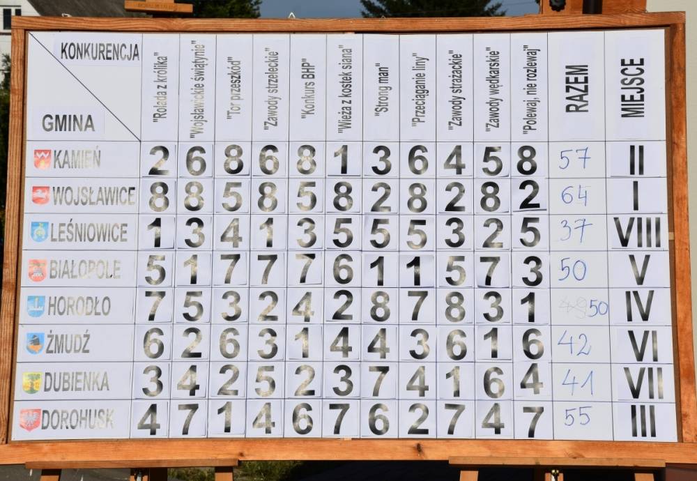 Podczas turnieju gminy rywalizowały w jedenastu konkurencjach oraz prezentowały swój dorobek kulturalny. W ostatecznej klasyfikacji zwyciężyli gospodarze, gmina Dorohusk zajęła 3. miejsce z dorobkiem 55 punktów. Poniżej prezentujemy wykaz poszczególnych konkurencji z udziałem naszych reprezentantów.