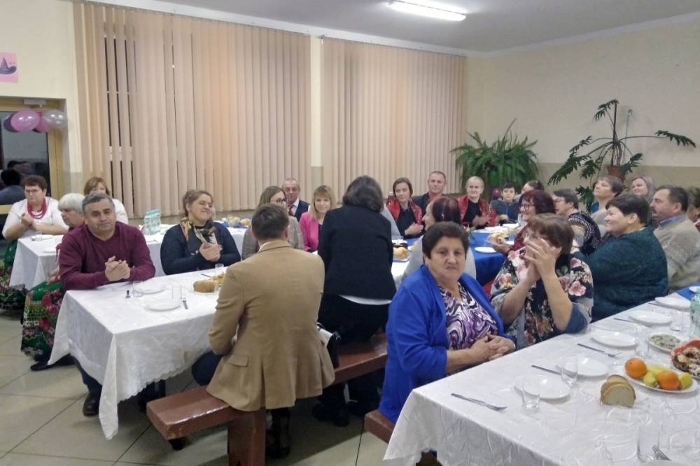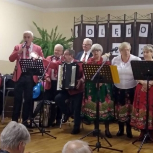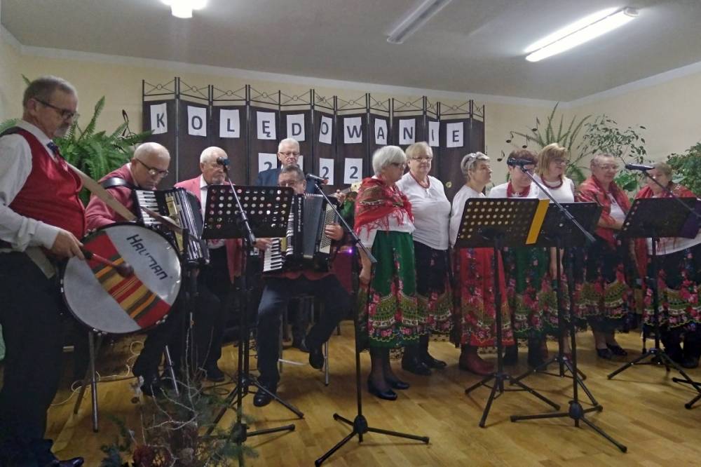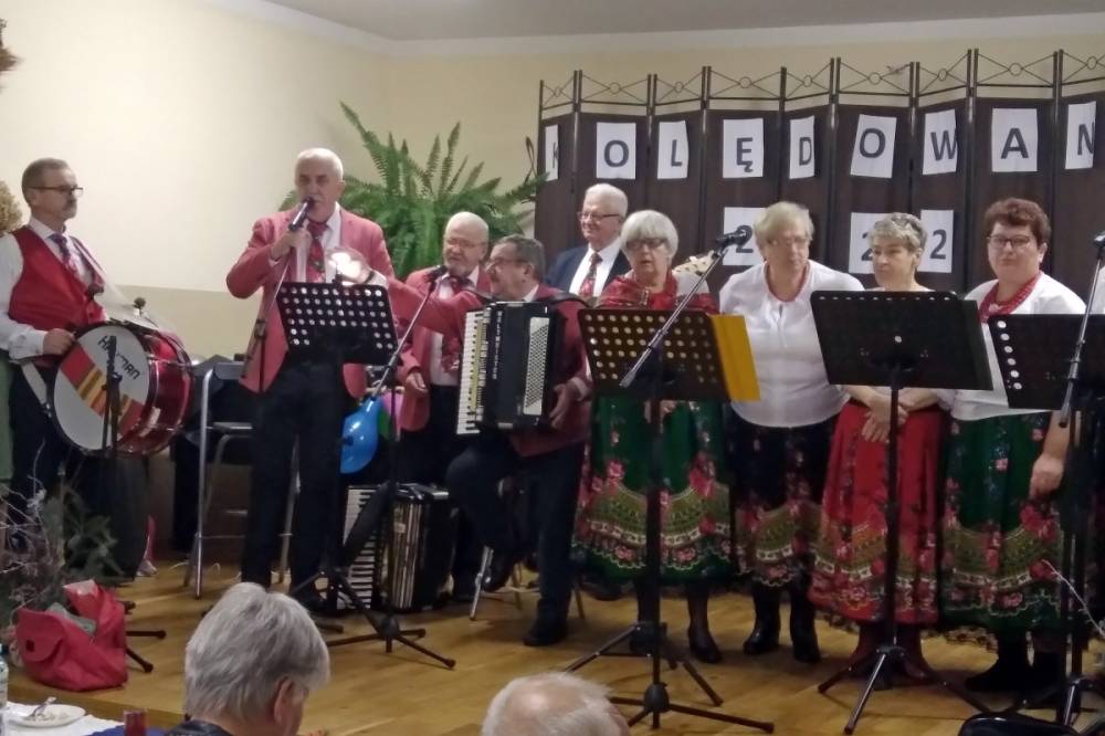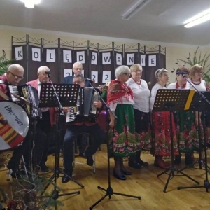Zespół wykonując piękne kolędy i pastorałki angażował gości do wspólnego kolędowania. Podczas spotkania nie zabrakło życzeń świątecznych oraz pysznego poczęstunku przygotowanego przez miejscowe Koło Gospodyń Wiejskich.