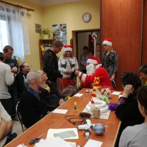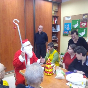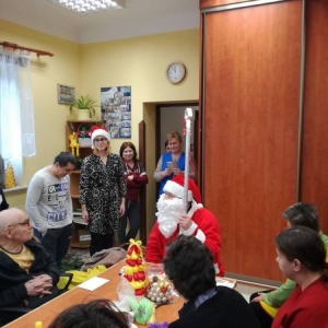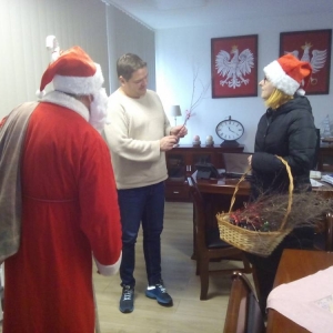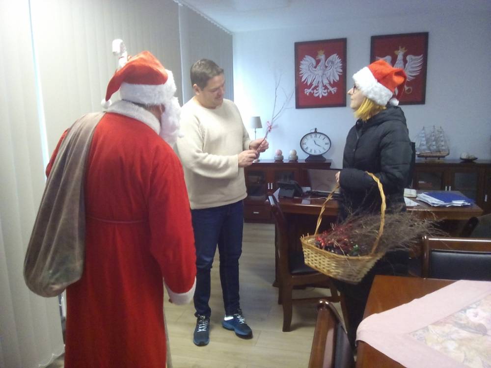 Mikołaj złożył wizytę również w Urzędzie Gminy, obdarowując wszystkich pracowników cukierkami i „symbolicznymi” rózgami. Następnie Mikołaj „zajrzał” do Komisariatu Policji, Banku, Przychodni i Ośrodka Pomocy Społecznej. Największą radość jednak sprawił swoją wizytą podopiecznym Środowiskowego Domu Samopomocy „Cytrynka”.