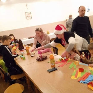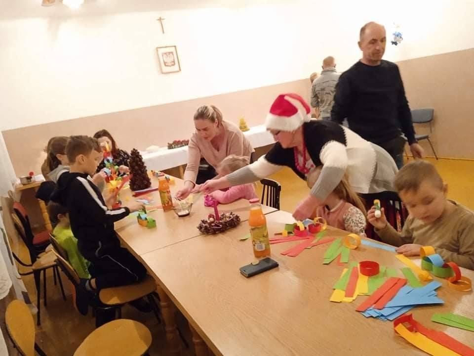 Organizatorki zadbały o smaczny poczęstunek i prezenty dla każdego dziecka. Wszyscy uczestnicy spotkania wykonali kolorowy łańcuch choinkowy.