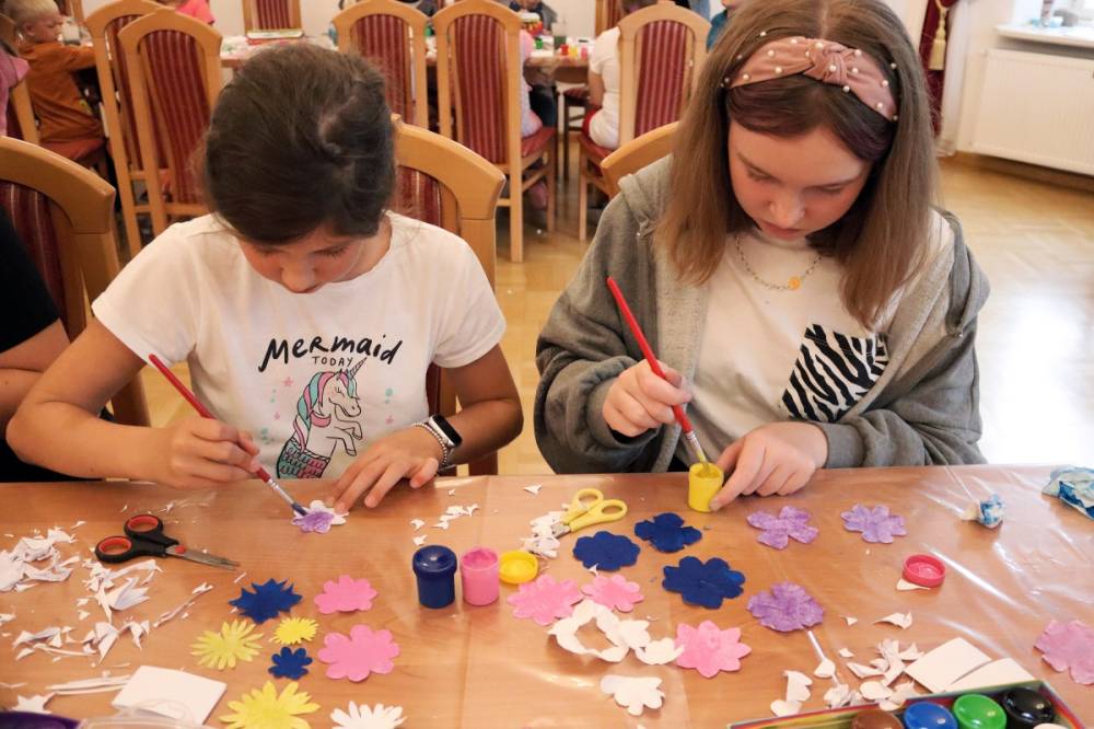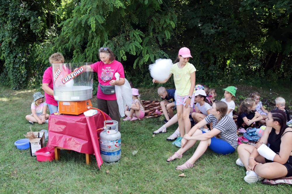 Podczas zajęć dzieci brały udział w różnorodnych warsztatach plastycznych i kulinarnych, nie zabrakło również zabaw na świeżym powietrzu oraz karaoke. Panie z Koła Gospodyń Wiejskich w Okopach-Kolonii przygotowały dla dzieci pyszną watą cukrową.