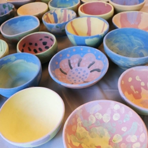 Podczas warsztatów ceramicznych prowadzonych przez Sylwię Jasiuk z pracowni Piwnica z Pasją powstały piękne przyborniki i miseczki z gliny.