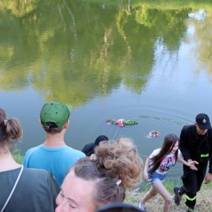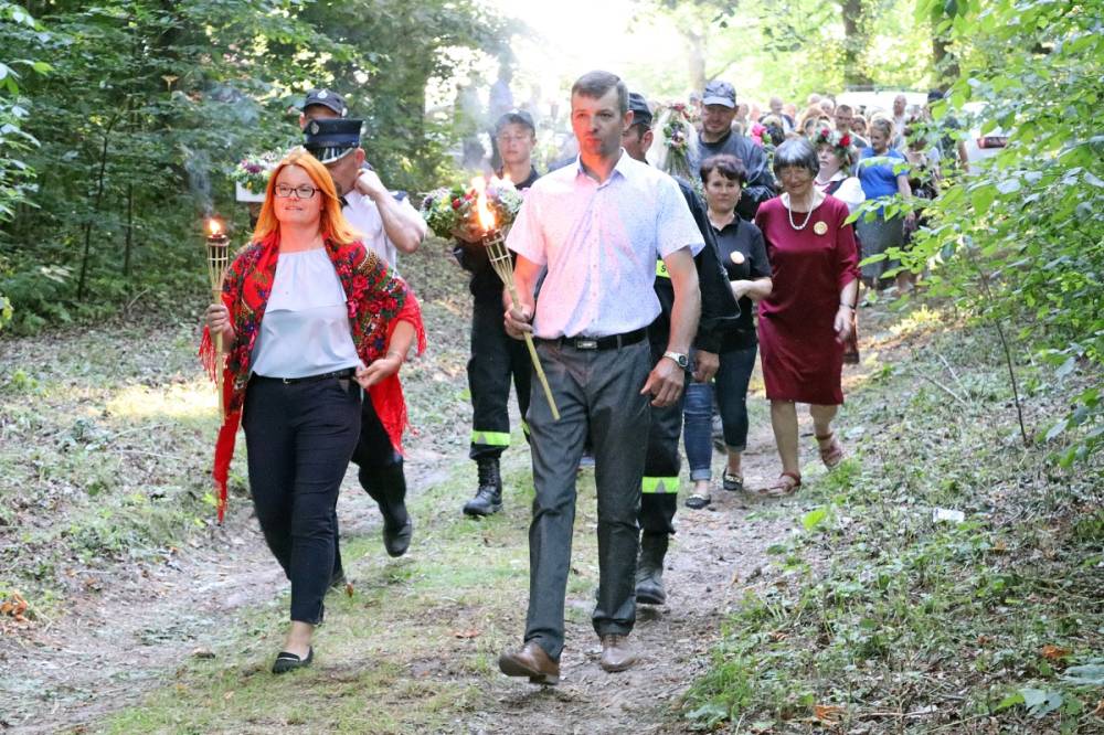 Wielu uczestników uroczystości wzięło udział w tradycyjnym korowodzie świętojańskim nad rzekę Bug prowadzonym przez sołtysów Świerż - Alicję Książek i Jana Suchockiego oraz Radną Rady Gminy - Ewę Furmanik.