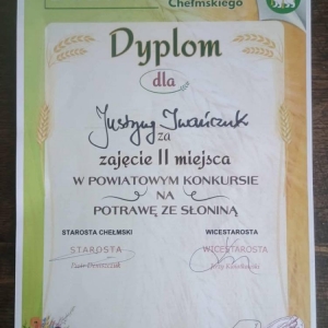 Podczas wydarzenia rozstrzygnięto również konkurs na najsmaczniejszą potrawę ze słoniny. Drugie miejsce zdobyły potrawy przygotowane przez Justynę Iwańczuk oraz Koło Gospodyń Wiejskich w Husynnem. Udział wzięli także Piotr Iwańczuk i Małgorzata Hajduk.