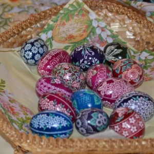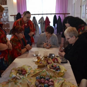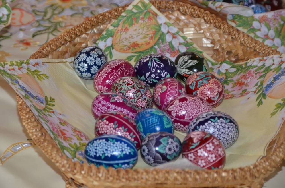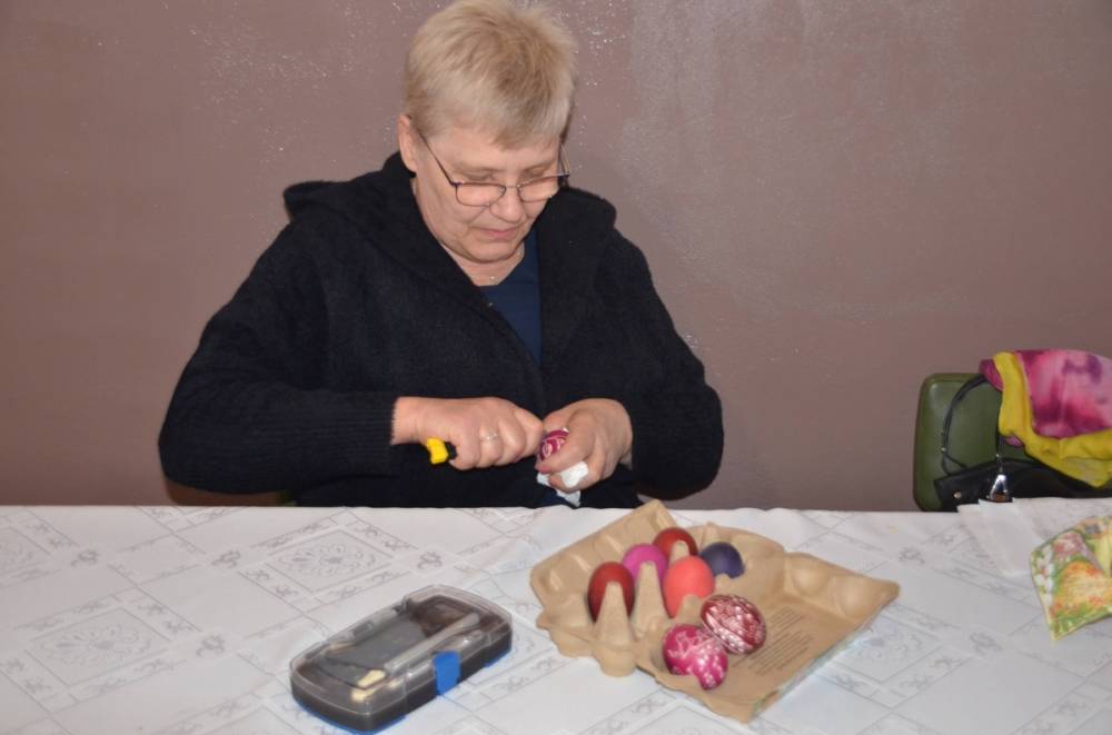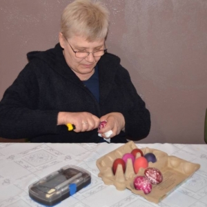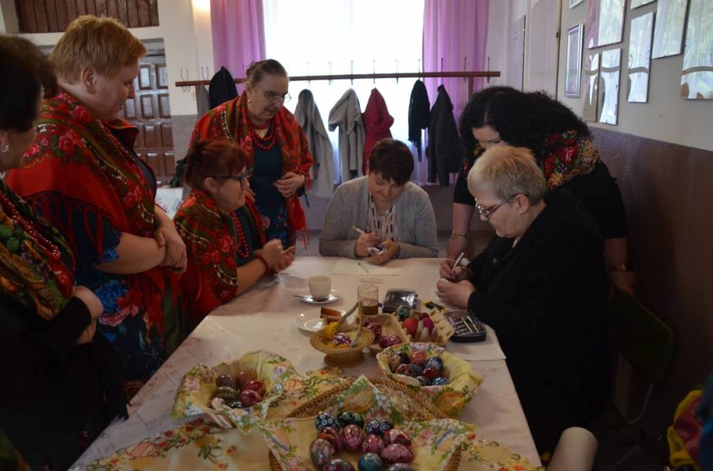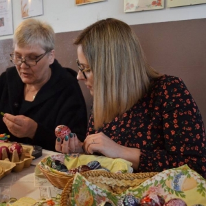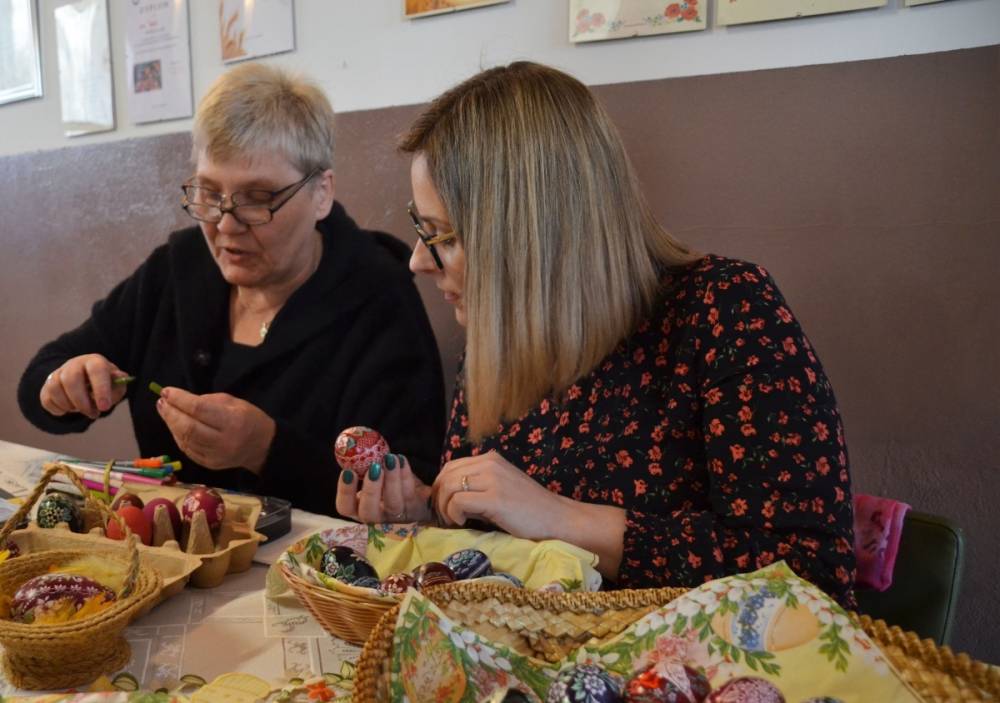 Podczas wydarzenia można było podejrzeć przy pracy Krystynę Tworek z Koła Gospodyń Wiejskich w Wólce Okopskiej, która prowadziła pokaz skrobania jajek wielkanocnych.