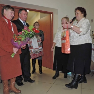 Miłym akcentem spotkania było podziękowanie Pani Krystynie Tryksie - byłej Przewodniczącej Gminnej Rady Kół Gospodyń Wiejskich w Dorohusku za ogromny wkład pracy i zaangażowanie w działalność w latach 2014-2018, które wraz z bukietem kwiatów wręczył Wójt Gminy.