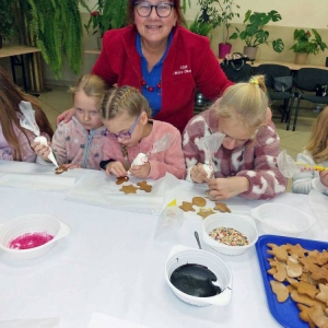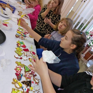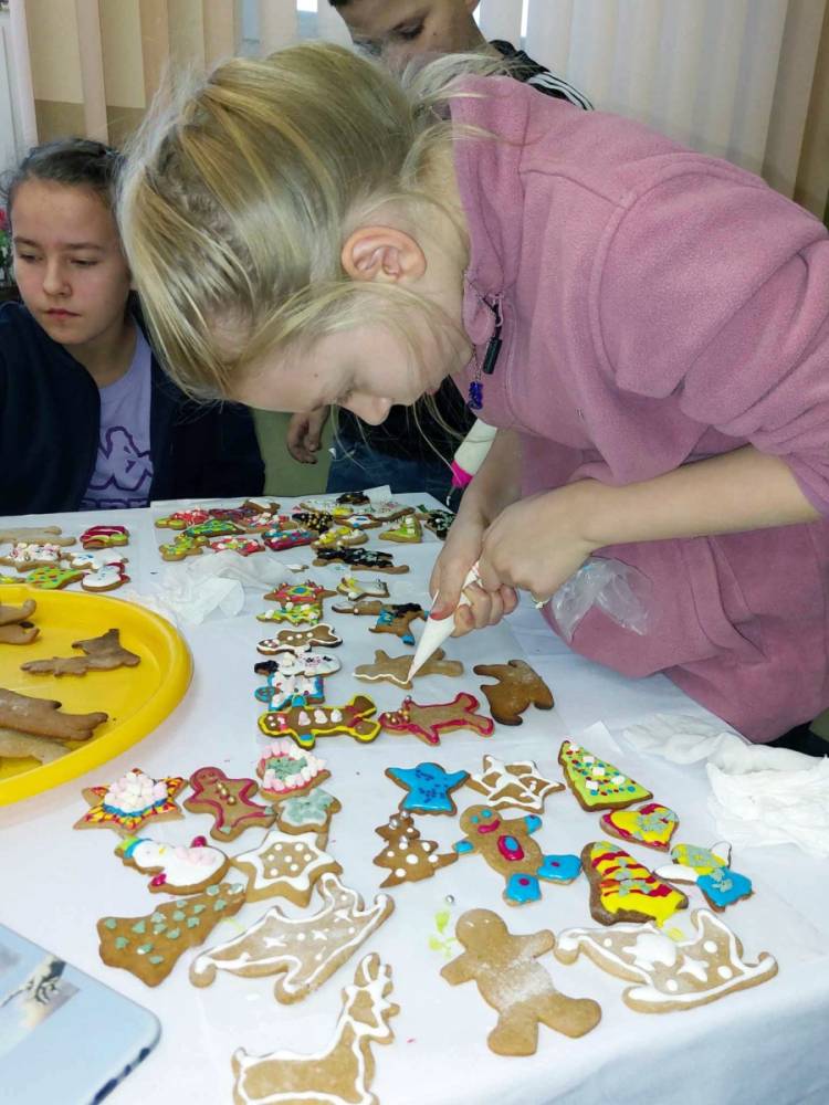Podczas spotkania dzieci dekorowały kolorowym lukrem i ozdobami przygotowane przez panie z KGW pierniczki.