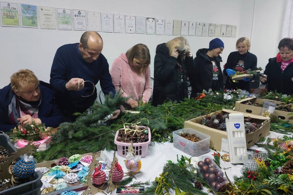Podczas spotkania powstały przepiękne, ręcznie wykonane dekoracje bożonarodzeniowe. Warsztaty cieszyły się dużym zainteresowaniem i były wspaniałą okazją do integracji.