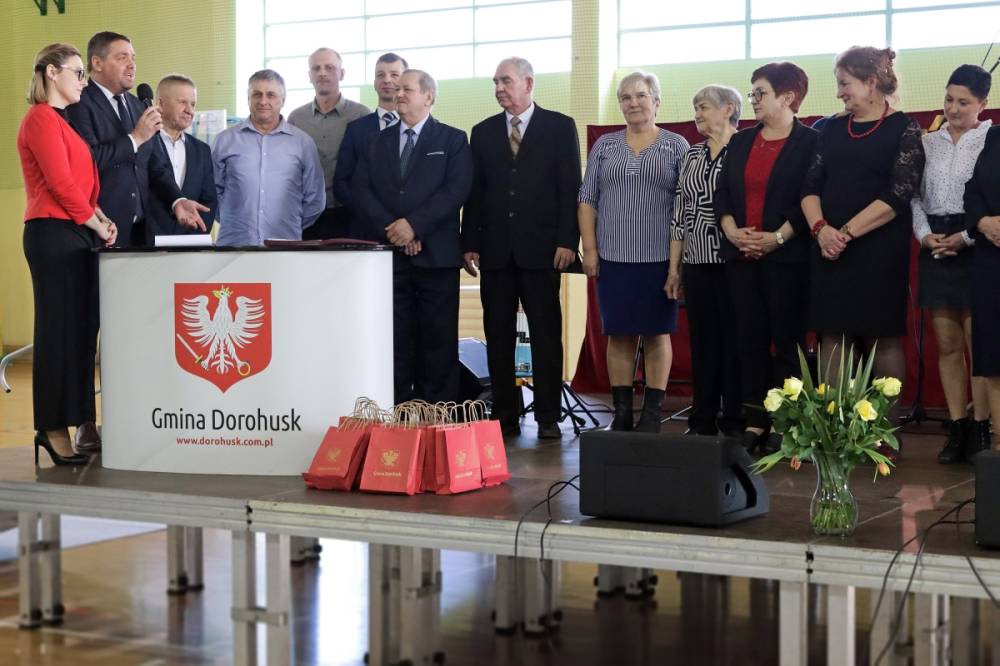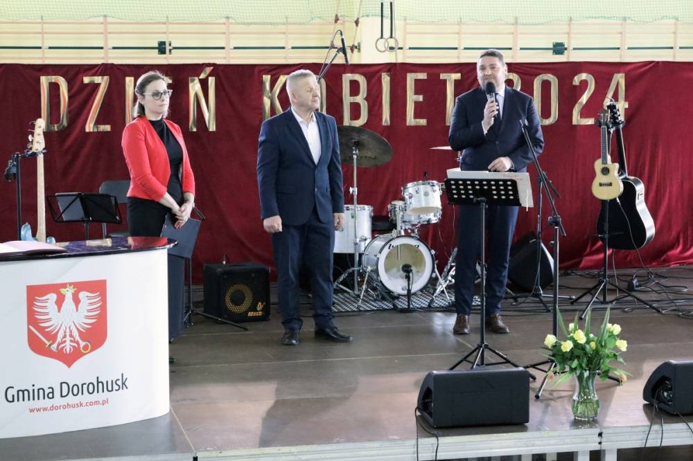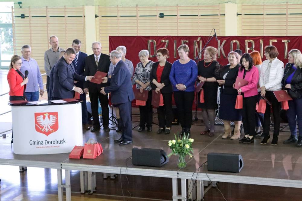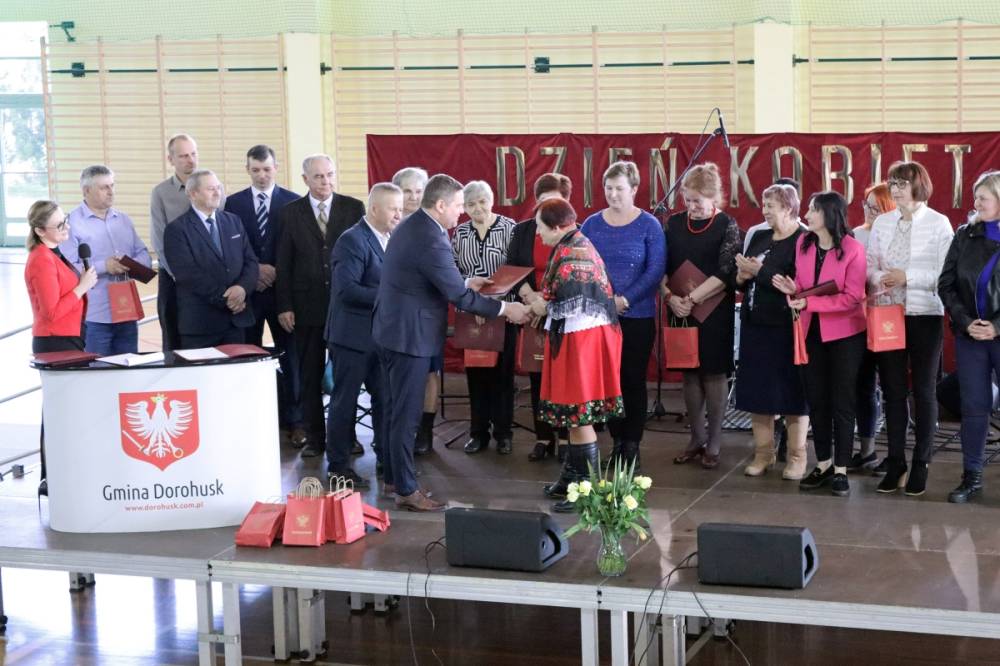 Uroczystość rozpoczęła się od życzeń złożonych przez Wojciecha Sawę – Wójta Gminy Dorohusk oraz Mieczysława Gałeckiego – Przewodniczącego Rady Gminy, a każda z Pań uczestniczących w wydarzeniu została obdarowana upominkiem.