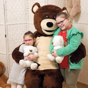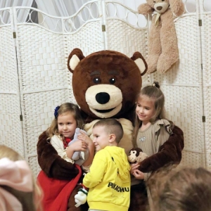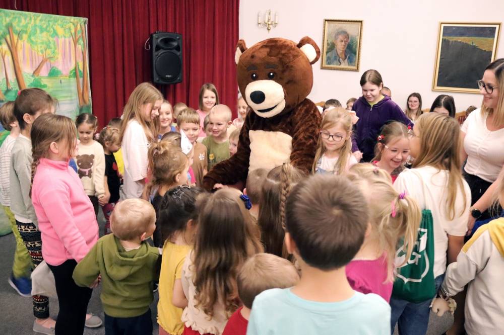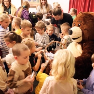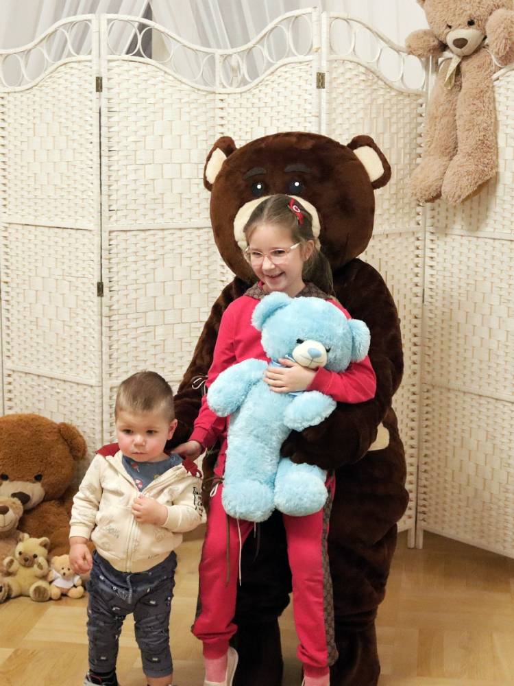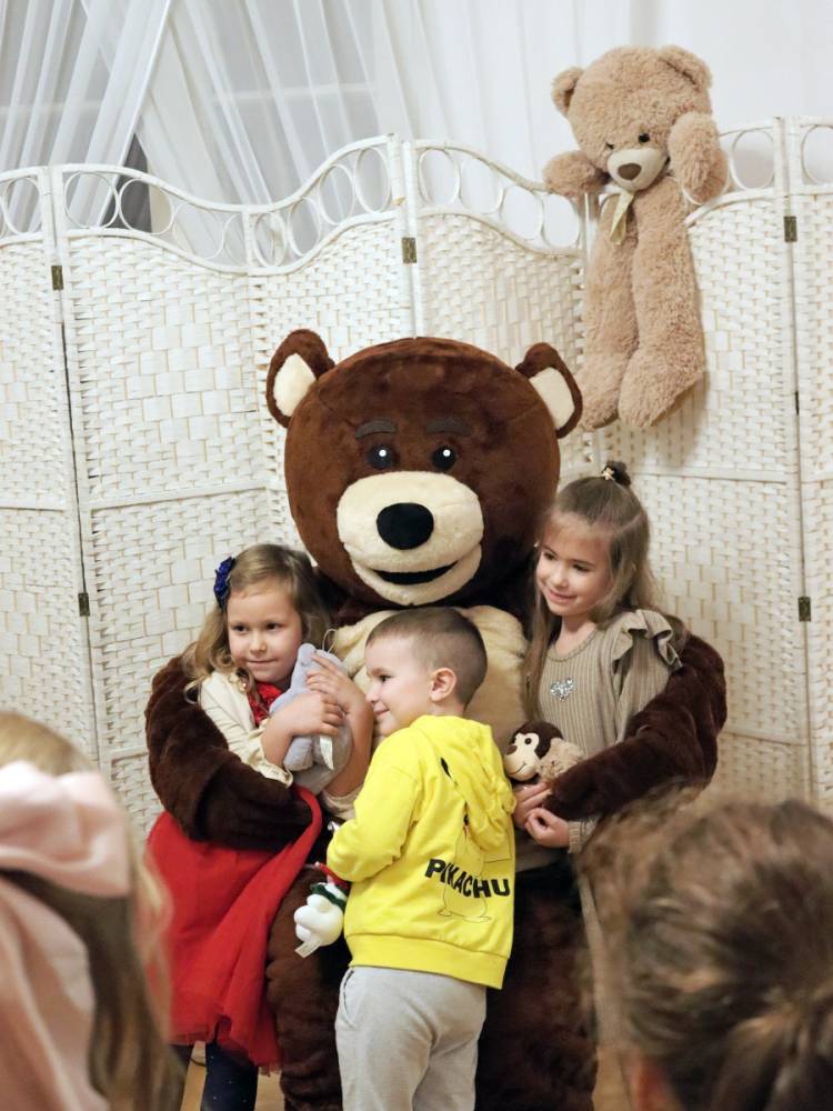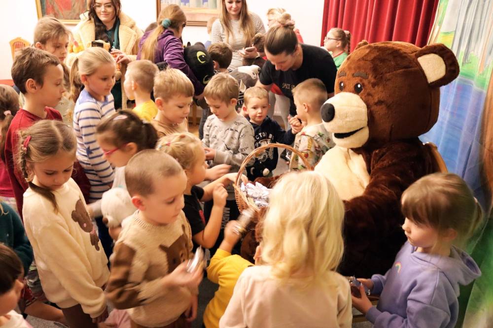 Niezapomnianą atrakcją był także specjalny gość – Pluszowy Miś, który przywitał dzieci, obdarowując je słodkimi niespodziankami, a następnie chętnie pozował do wspólnych pamiątkowych zdjęć.