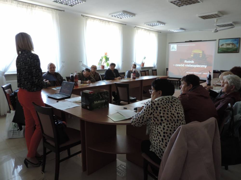 Wiodącym tematem były zasady bezpieczeństwa podczas prac wykonywanych w gospodarstwie rolnym. Interesującą prelekcję na ten temat, popartą prezentacją multimedialną wygłosiła Agnieszka Błaszczuk-Mech z Placówki Terenowej Kasy Rolniczego Ubezpieczenia Społecznego w Chełmie.
