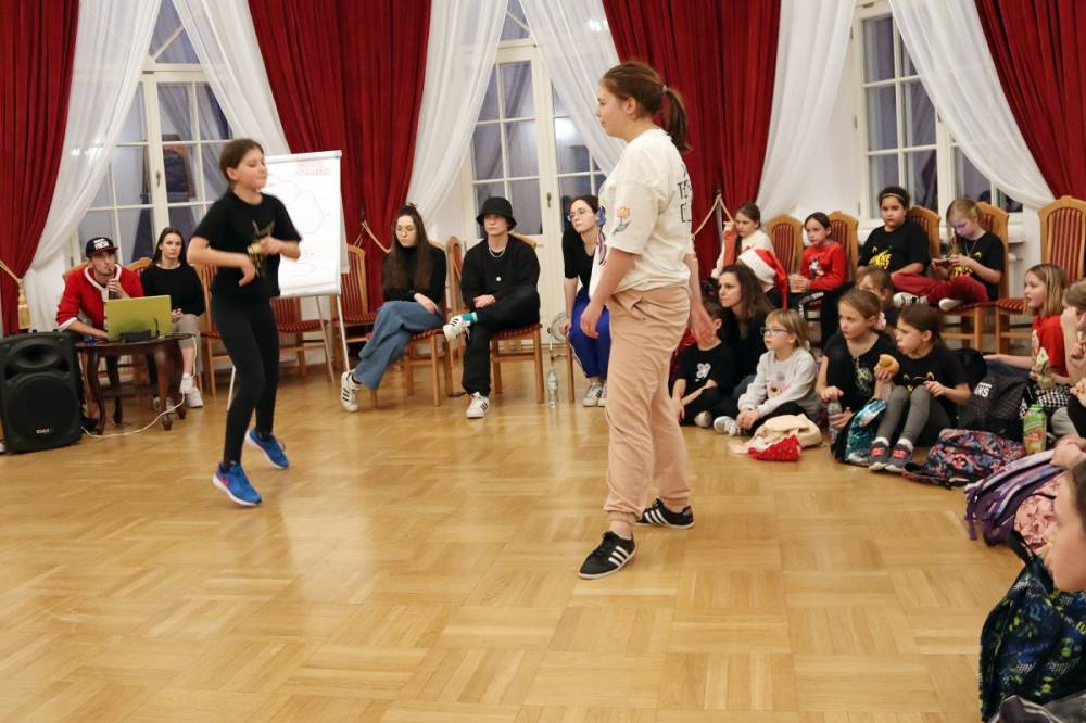 Podczas zajęć młodzi adepci poznawali i doskonalili sztukę taneczną Wackingu, Hip-Hopu oraz Break Dance’u pod czujnym okiem instruktorów – Pauliny Stanisławek, Weroniki Stanisławek i Filipa Kucybały. Warsztaty grupy początkującej zakończyły się krótkim pokazem dla rodziców.