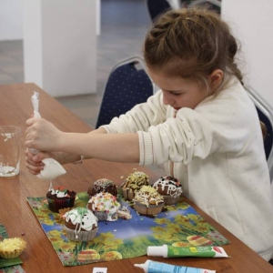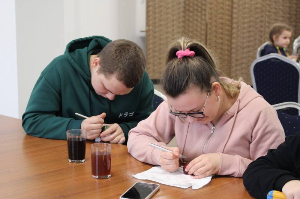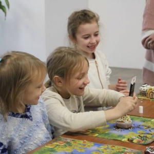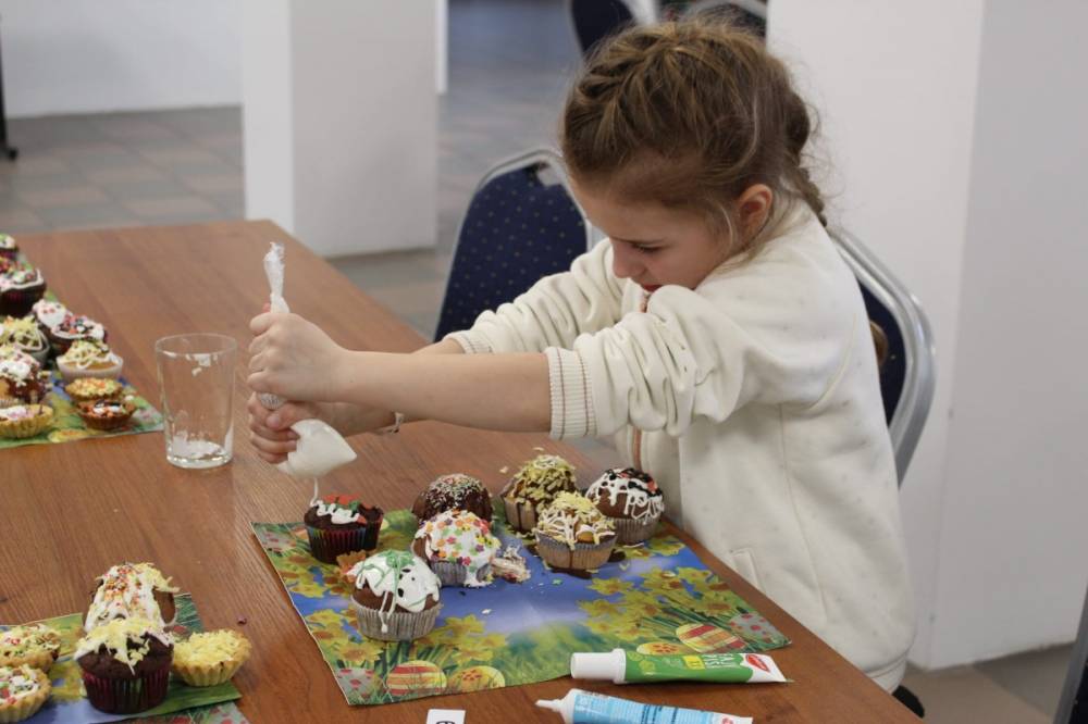 Uczestnicy warsztatów, pod okiem Krystyny Tworek, mogli spróbować swoich sił w wykonaniu pisanek metodą drapania i odkryć w sobie artystyczną duszę. W tym samym czasie najmłodsi bawili się kolorami, ozdabiając wielkanocne babeczki w swoim wyjątkowym stylu.