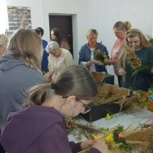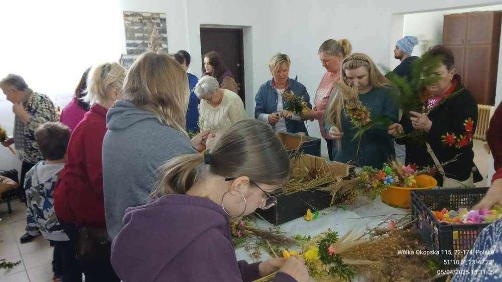 Podczas spotkania uczestnicy mieli okazję własnoręcznie wykonać tradycyjne palmy, korzystając z materiałów przygotowanych przez organizatorów. Warsztaty przebiegły w miłej i twórczej atmosferze, sprzyjającej integracji oraz pielęgnowaniu lokalnych tradycji.