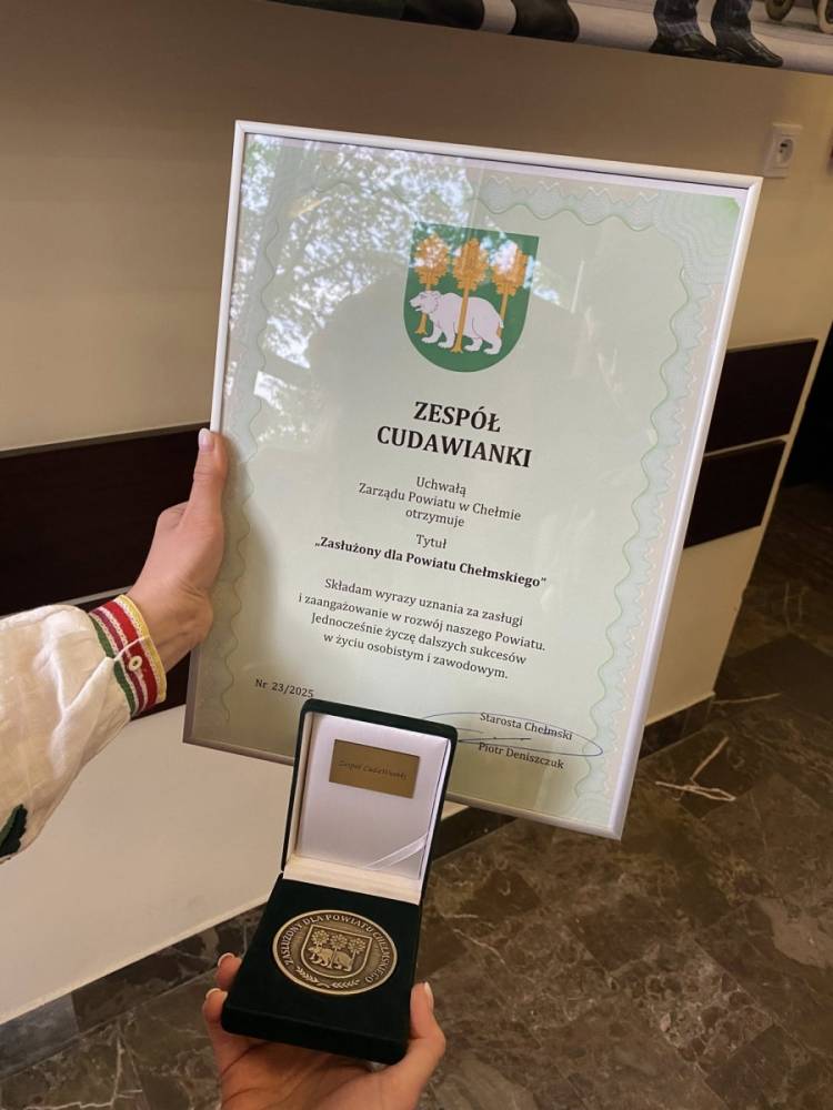 Z przyjemnością informujemy, że w dniu 10 maja br., podczas uroczystej gali w Chełmskim Domu Kultury, zespół CudaWianki został uhonorowany tytułem „Zasłużony dla Powiatu Chełmskiego”.