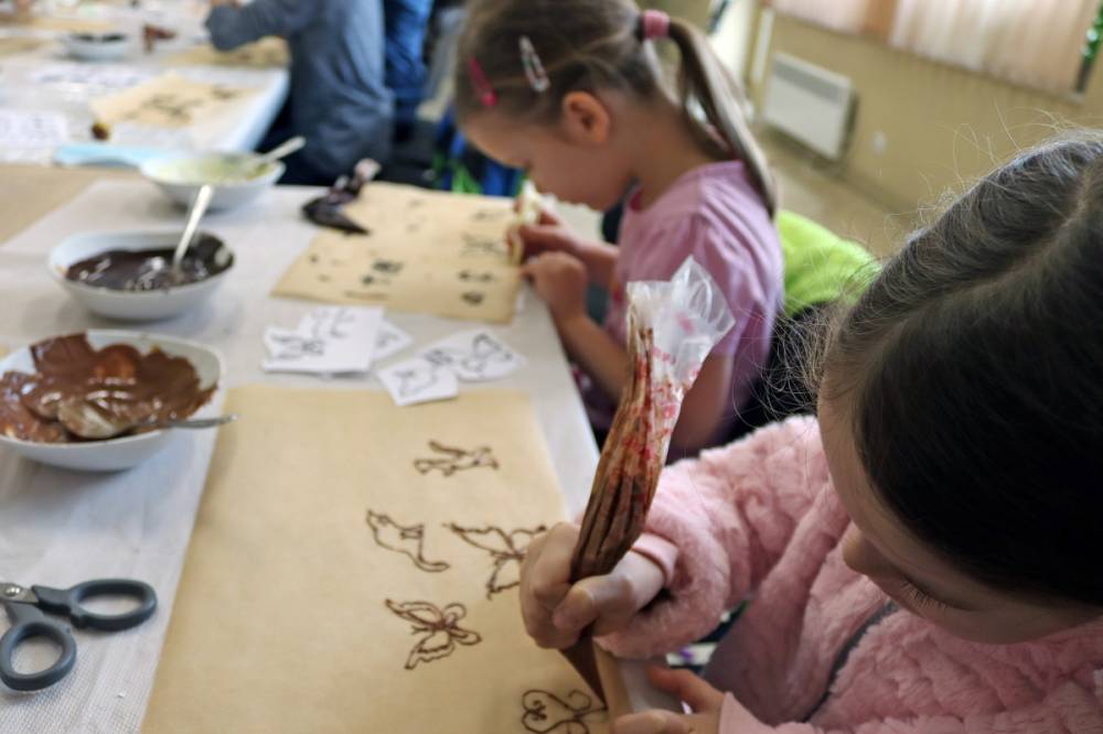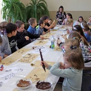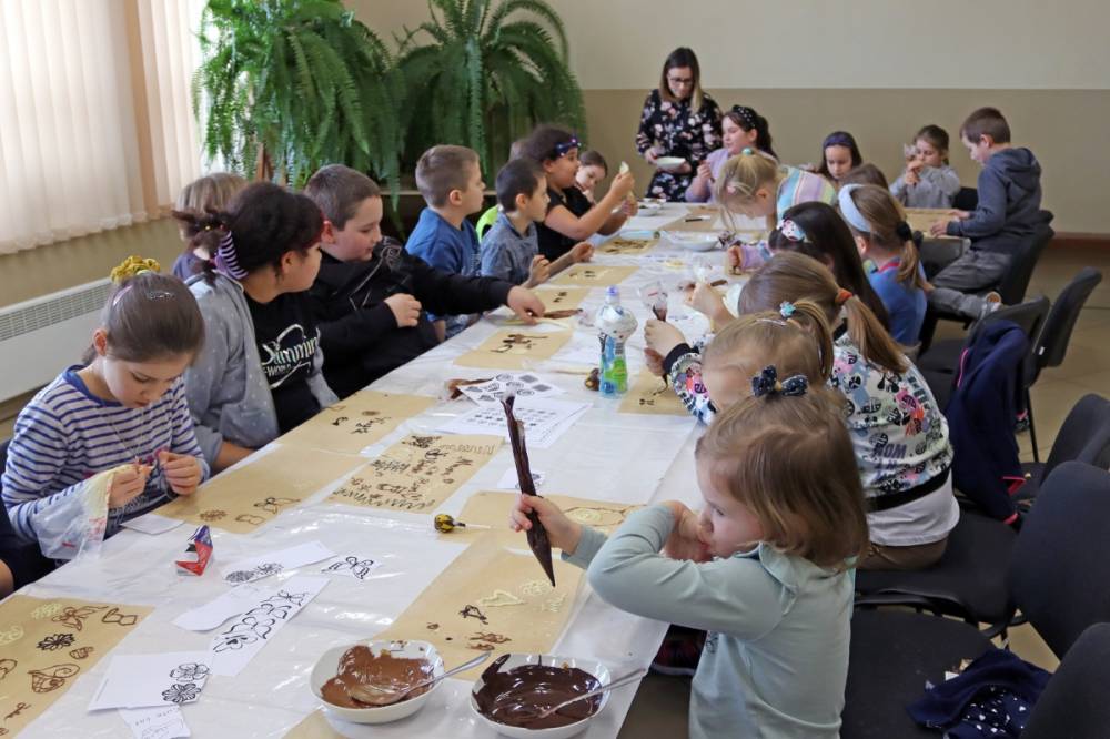 Ostatniego dnia zajęć uczestnicy przenieśli się w słodką krainę czekolady, dowiedzieli się gdzie rosną drzewa kakaowca, z czego i jak robi się czekoladę oraz samodzielnie wykonali czekoladowe dekoracje i łakocie.