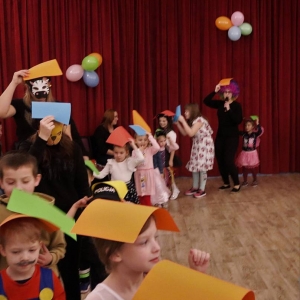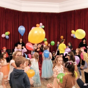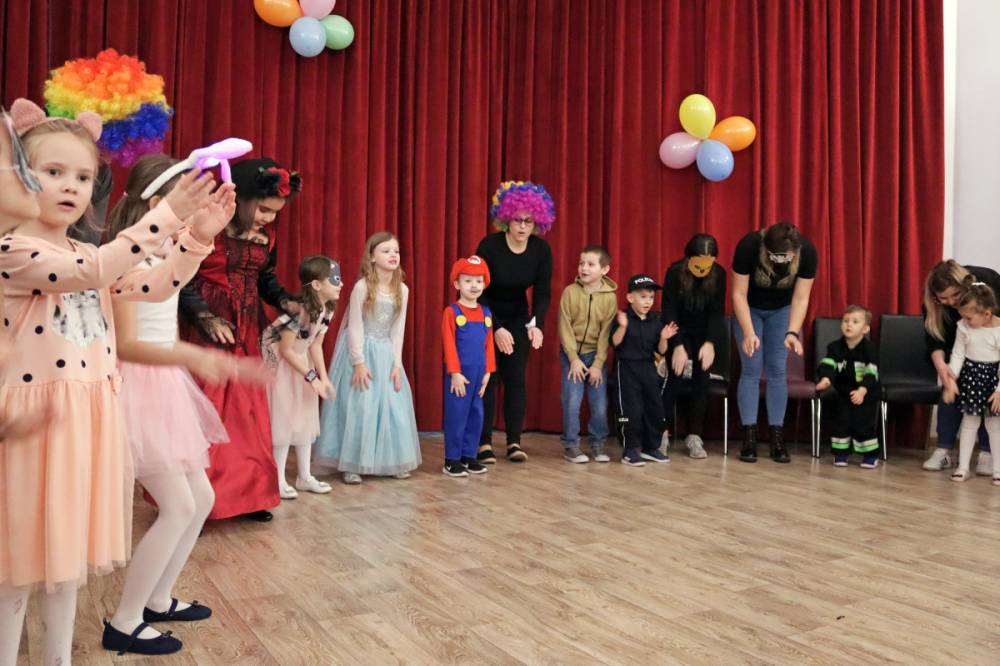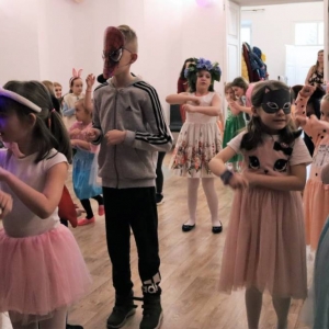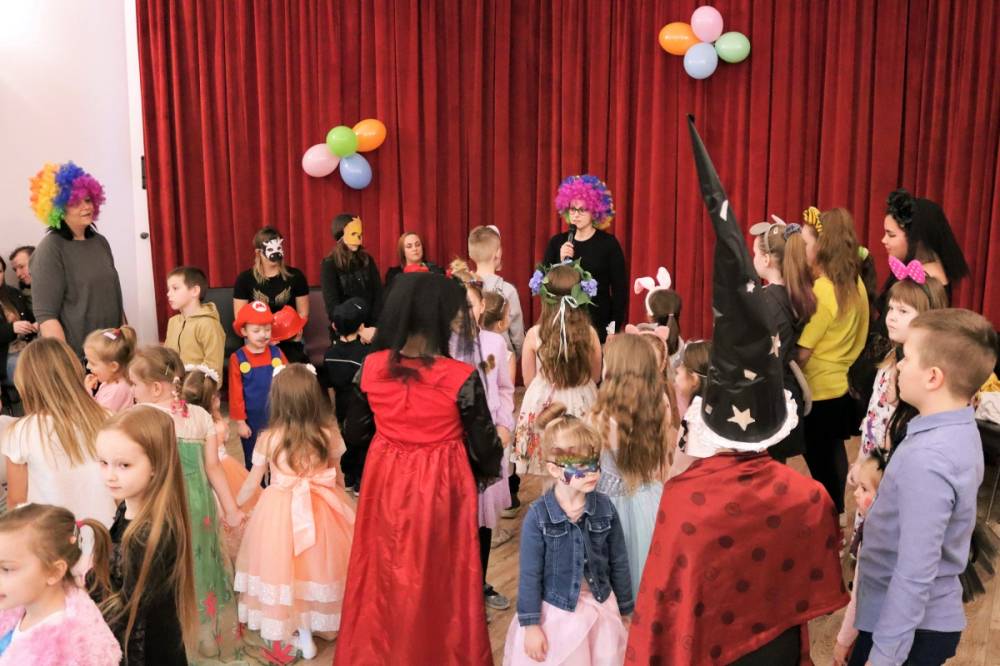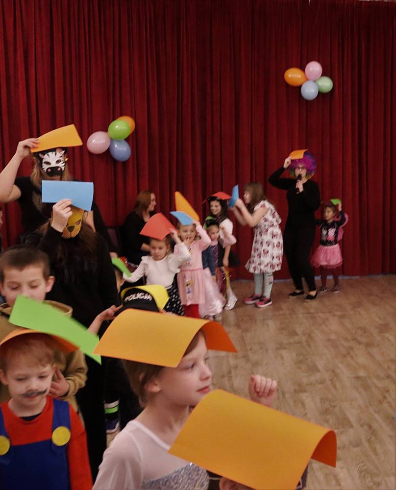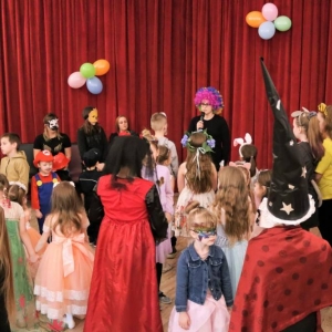 Feryjny tydzień pełen wrażeń zakończony został balem karnawałowym. Podczas zabawy najmłodsi mogli zaprezentować ciekawe przebrania i uczestniczyć w licznych zabawach przygotowanych specjalnie na tę okazję. W przerwie na wszystkich czekał słodki poczęstunek - gofry.