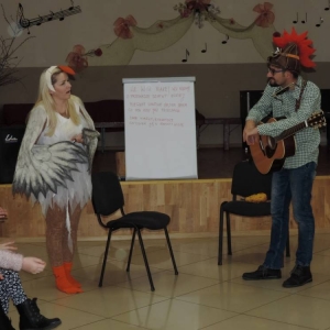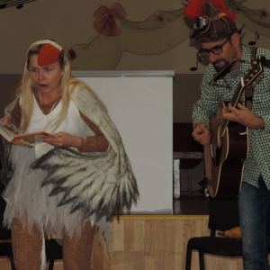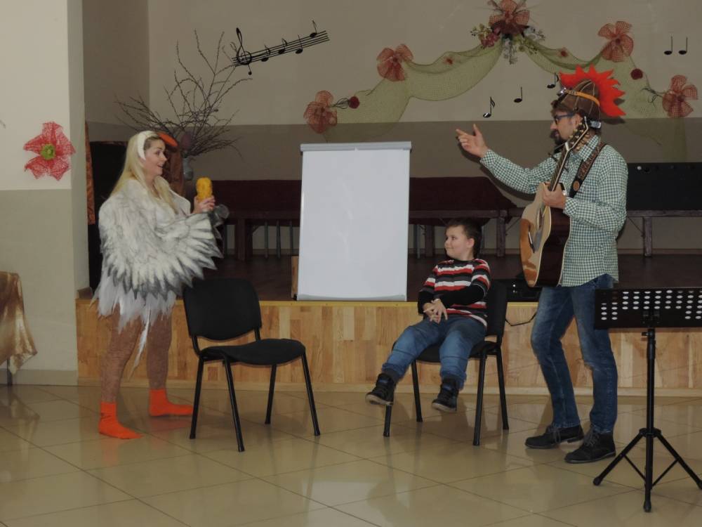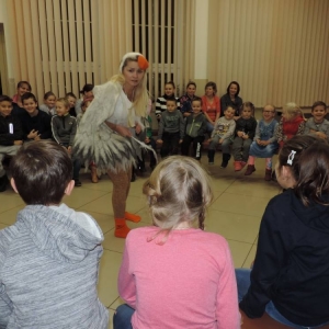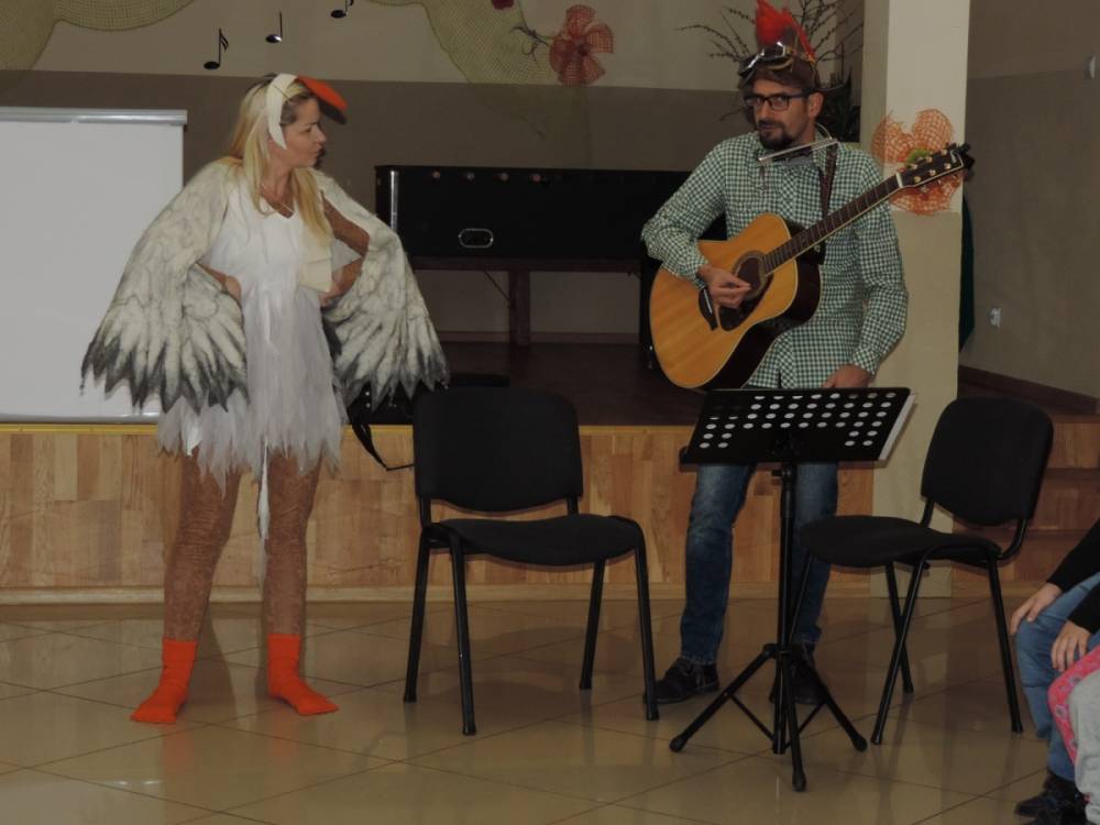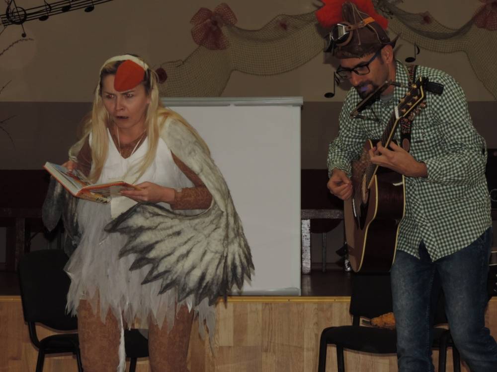 W rolę samotnej Gąski wcieliła się Barbara Szarwiło - aktorka Teatru Ziemi Chełmskiej, której towarzyszył przygrywający na gitarze Bartłomiej Kazimierczak. Spotkanie miało charakter warsztatów animacyjnych angażujących dzieci do wspólnej zabawy, rozwijających wyobraźnię i odwagę.