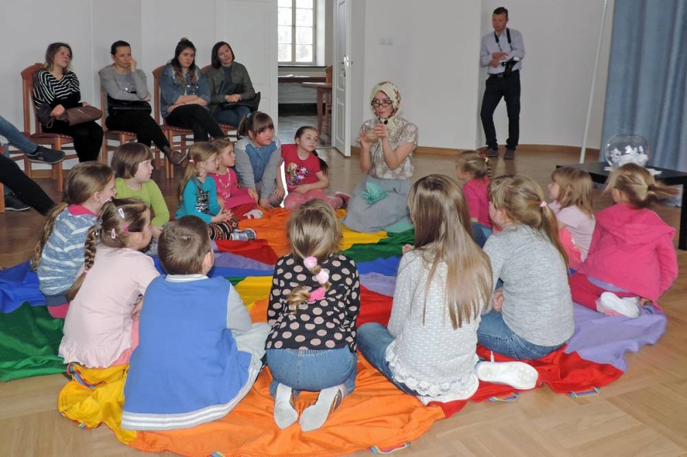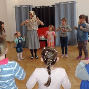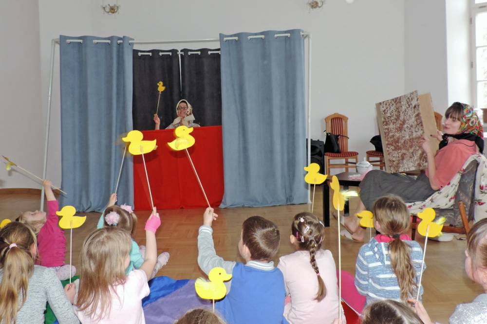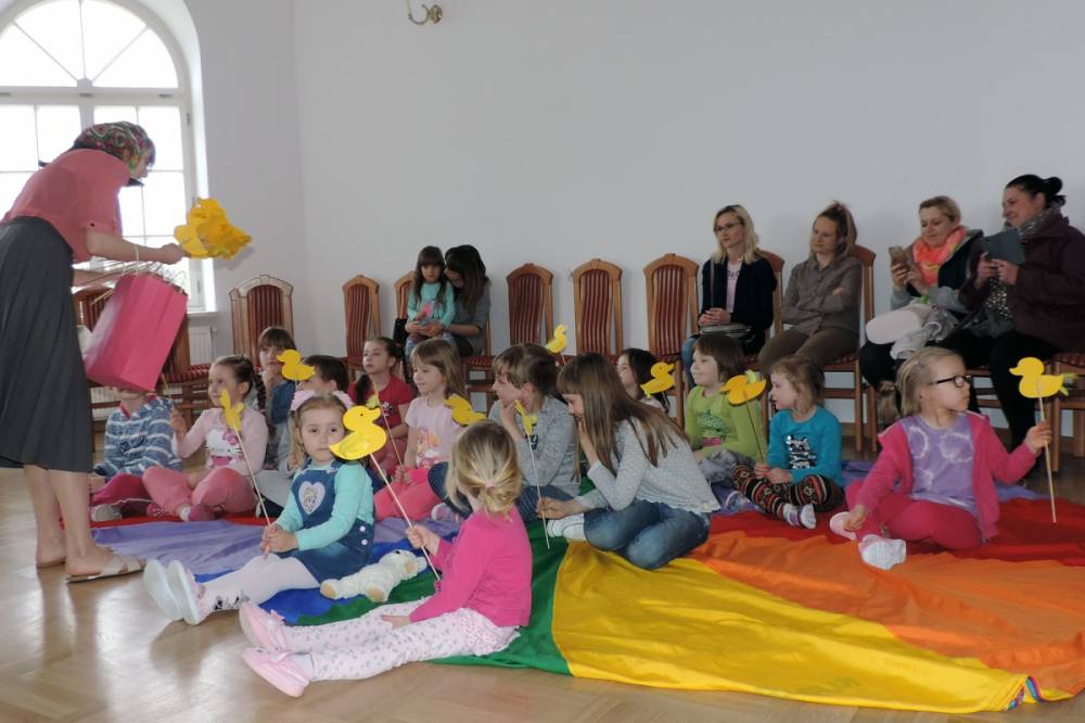 12 kwietnia 2019 r. w Pałacu Suchodolskich odbyło się kolejne „Bajkowe Spotkanie”, prowadzone już po raz trzeci przez Panie z akademii „Aaa kuku” - Justynę Siedlecką i Agnieszkę Gąsior. Tym razem odwiedziła nas Kapryśna Kaczuszka, która zabrała najmłodszych z wizytą do Wielkanocnych Babek.