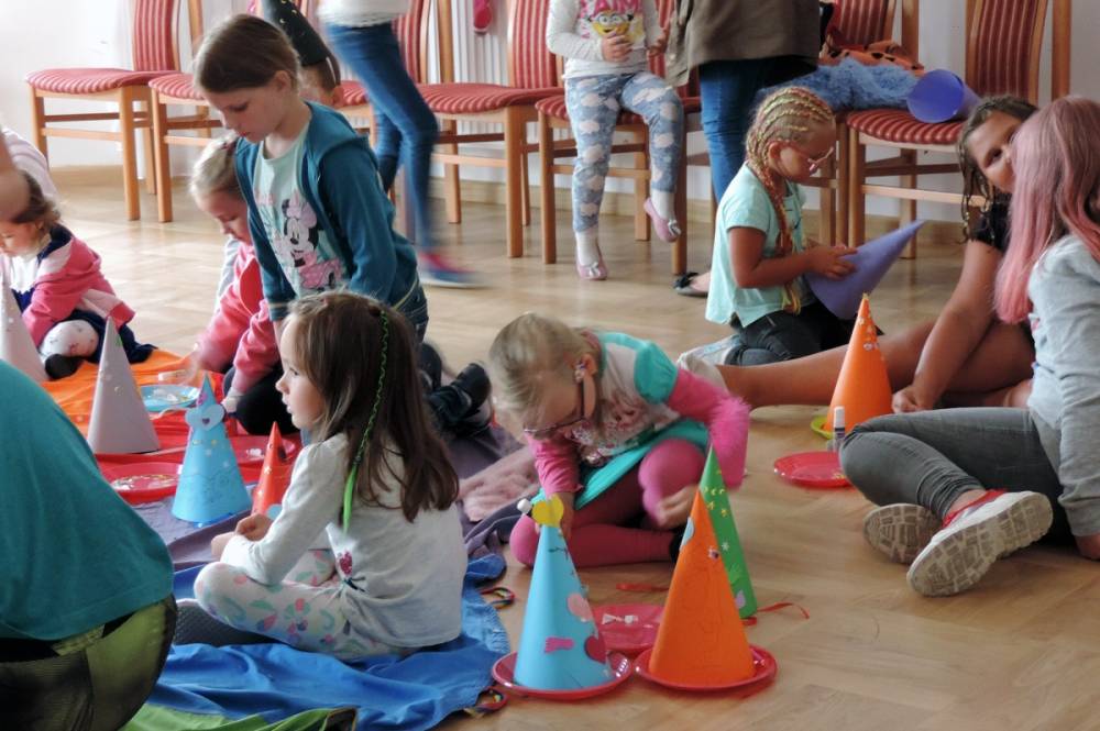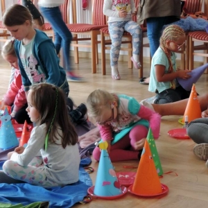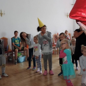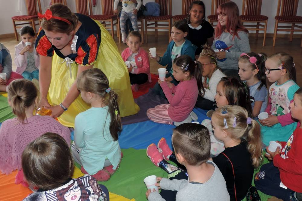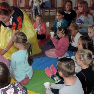 Na początku spotkania Królewna podała dzieciom do wypicia magiczny eliksir, który przeniósł je w świat baśni. Następnie dzieci wysłuchały opowiadania i przystąpiły do ozdabiania czapek wróżki.