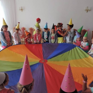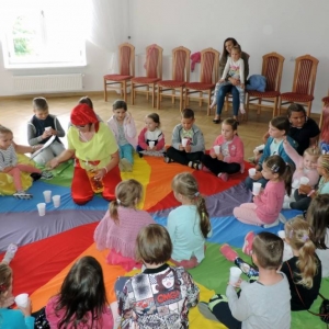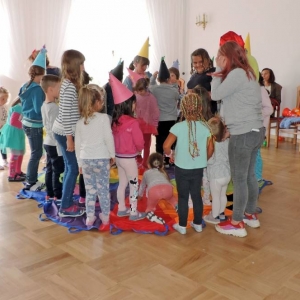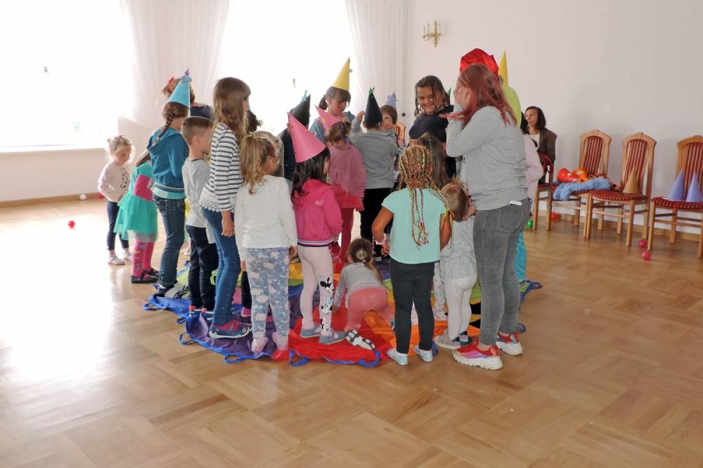Potem były zabawy z kolorową chustą, wspólny taniec i przeciąganie liny. Tradycyjnie spotkanie zakończone zostało wspólnym zdjęciem.