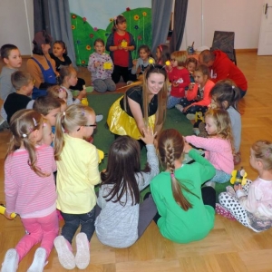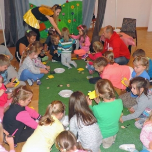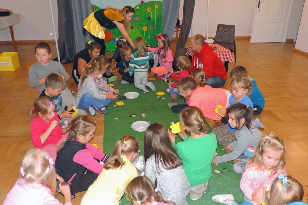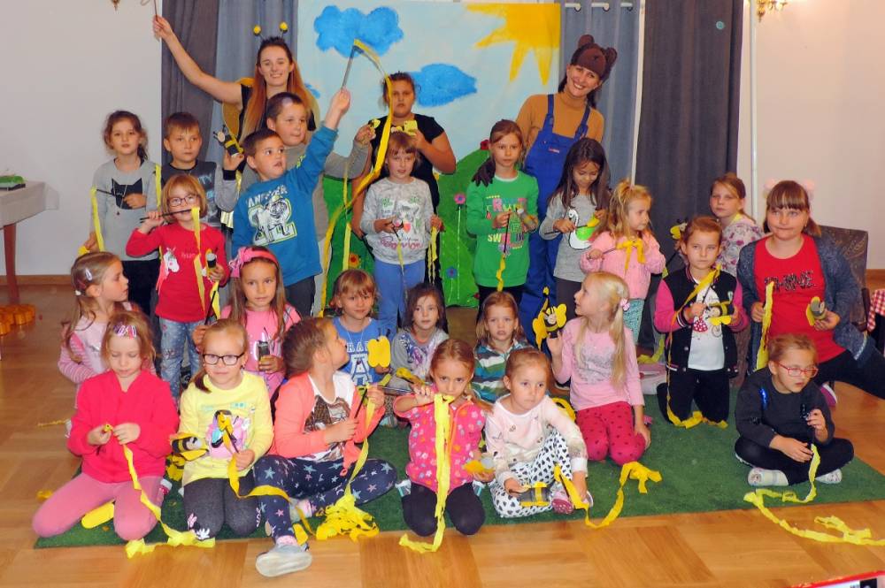 Podczas spotkania oprócz dobrej zabawy, tańców i śpiewów bohaterowie uczyli dzieci segregacji śmieci, szacunku do pracowitych owadów - pszczół oraz podkreślali wagę dbania o środowisko.