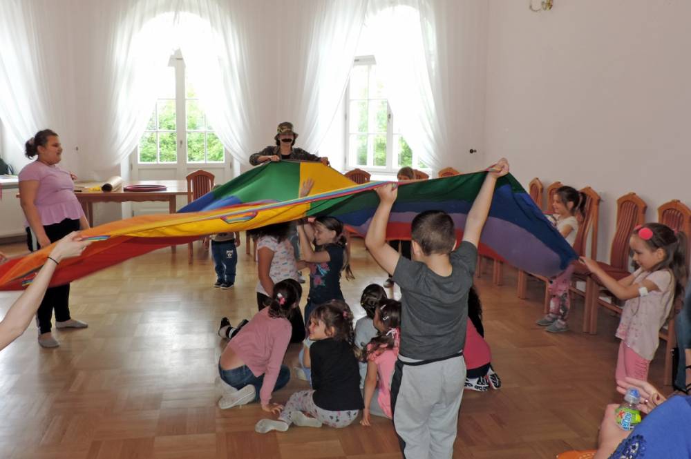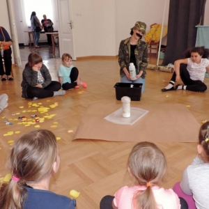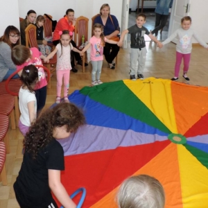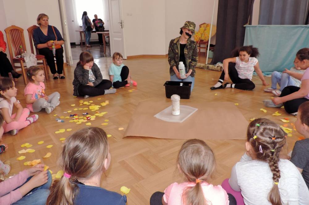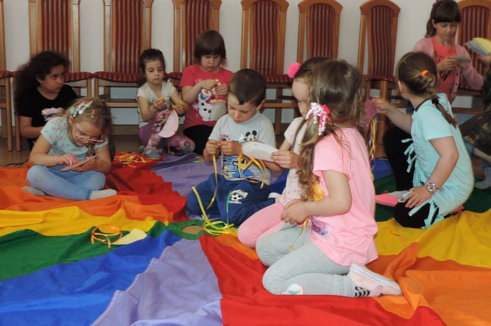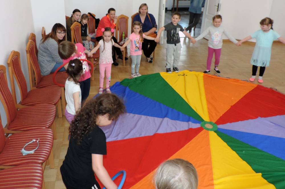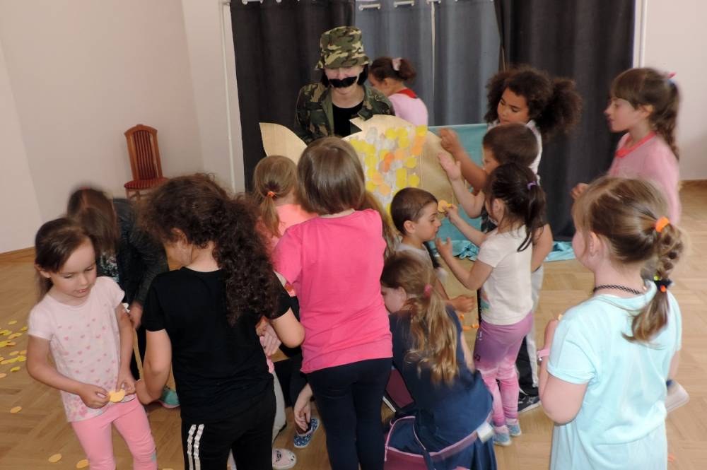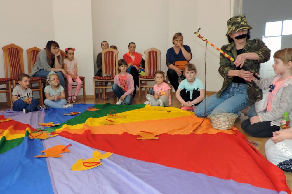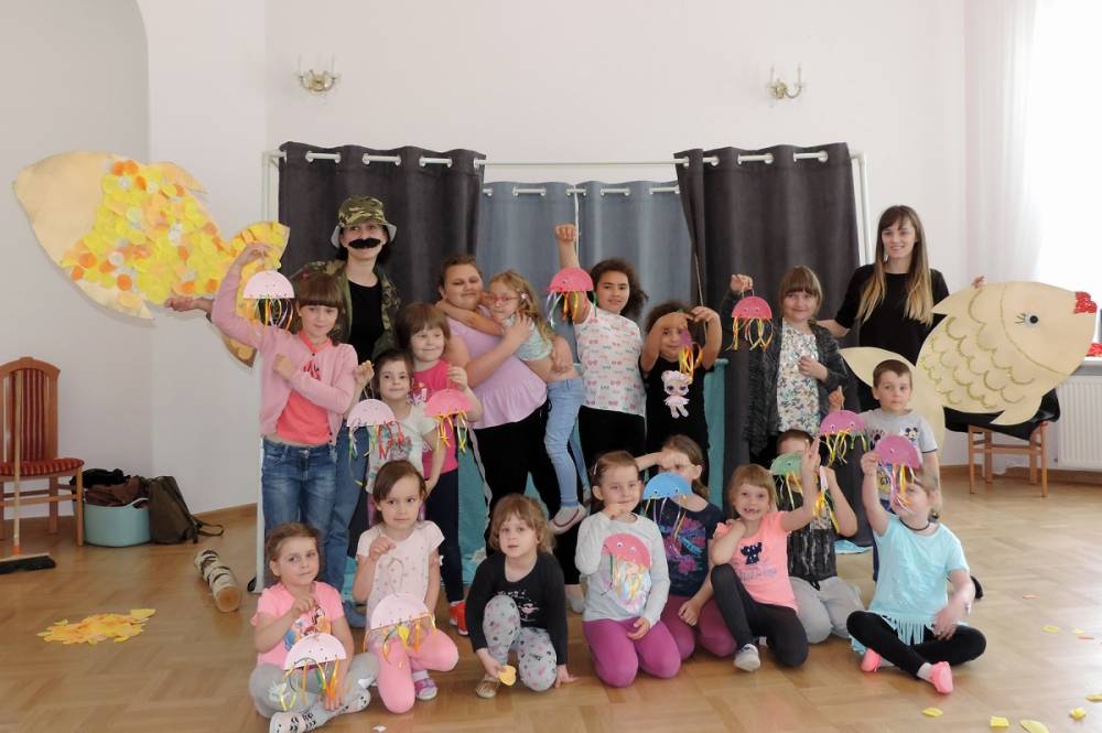 Dzieci po wysłuchaniu historii o „Złotej Rybce” próbowały ją złowić, a następnie robiły kolorowe meduzy. Kolejną atrakcją było przechodzenie przez hula-hop bez rozrywania rąk.