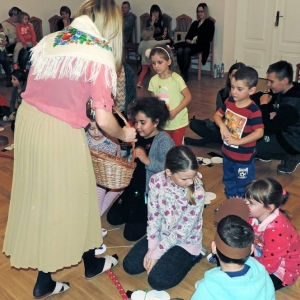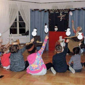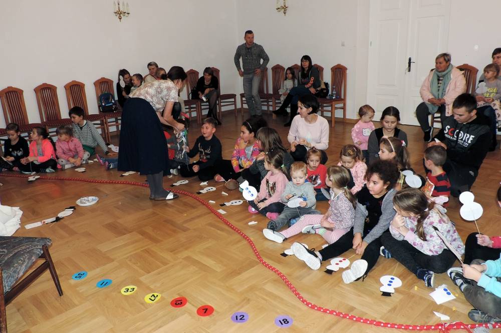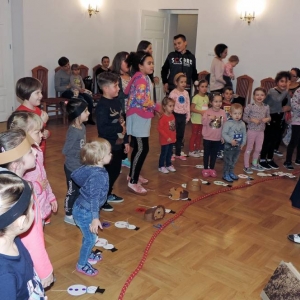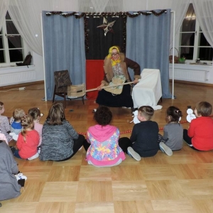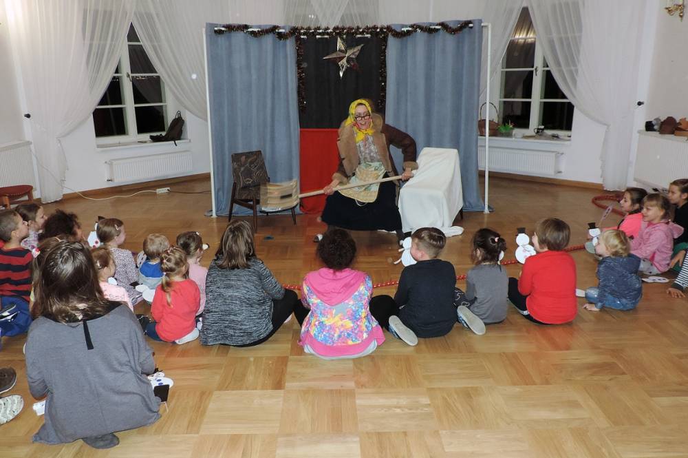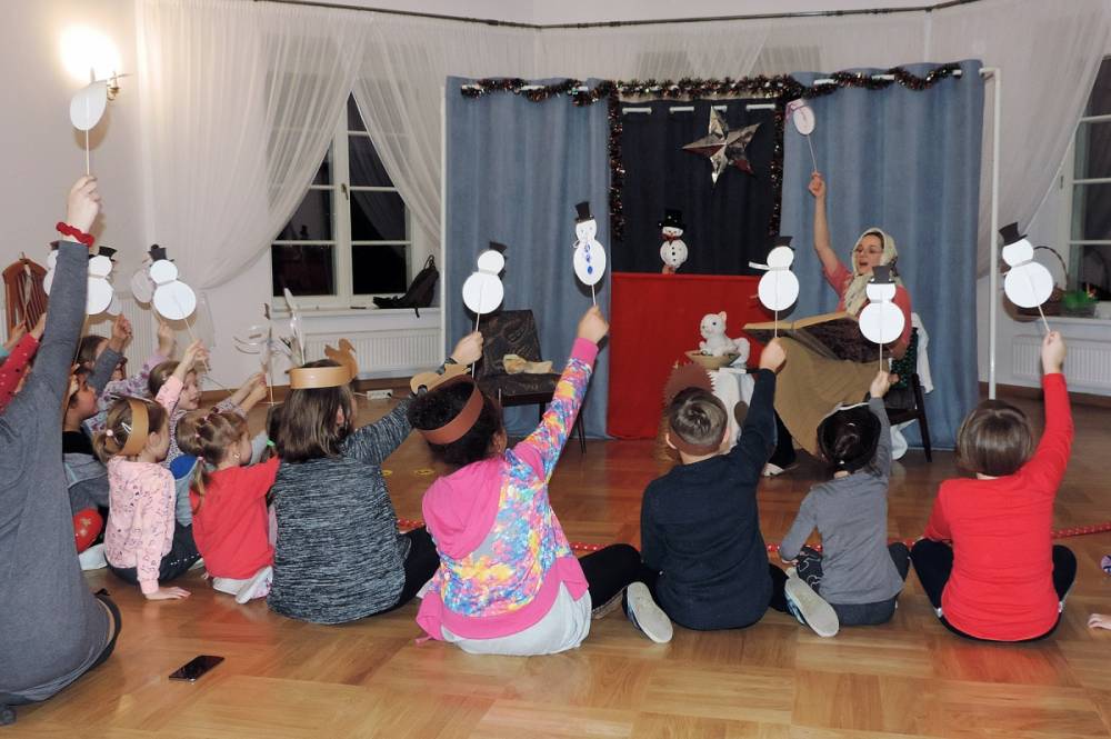 Podczas spotkania dzieci wykonały własnego bałwanka, wcielały się w rolę leśnych zwierzątek, brały udział w różnorodnych grach i zabawach, odpowiadały na „świąteczne” pytania oraz wybrały się ze reniferem w poszukiwanie orzechów do świątecznego ciasta.