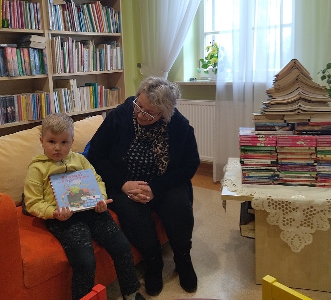 Do grona Małych Czytelników dołączył Wiktor z babcią. Podczas wizyty w bibliotece odebrał Wyprawkę Czytelniczą oraz Kartę Małego Czytelnika. Pierwsza naklejka przyklejona.