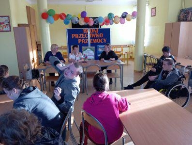 Miesiąc listopad to czas, w którym Specjalny Ośrodek Szkolno-Wychowawczy w Dorohusku ul.Graniczna 1 uczestniczył w kompanii " 19 dni przeciwko przemocy, krzywdzeniu dzieci i młodzieży" . Tegoroczne hasło przewodnie to " Ej to nie żart. To jest przemoc!" Jednym z podjętych przez Ośrodek działań były cykliczne spotkania z pracownikami Gminnej Biblioteki Publicznej w Dorohusku. W drugim spotkaniu dn. 15.11.20204r. z bajkami terapeutycznymi uczestniczyli uczniowie SP/PDP SOSW.
