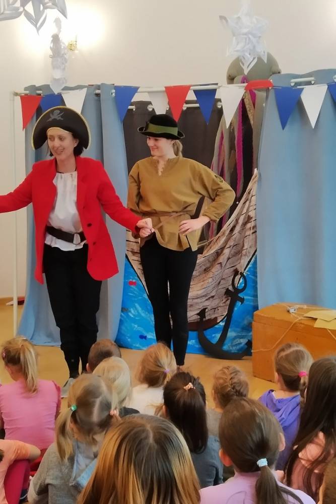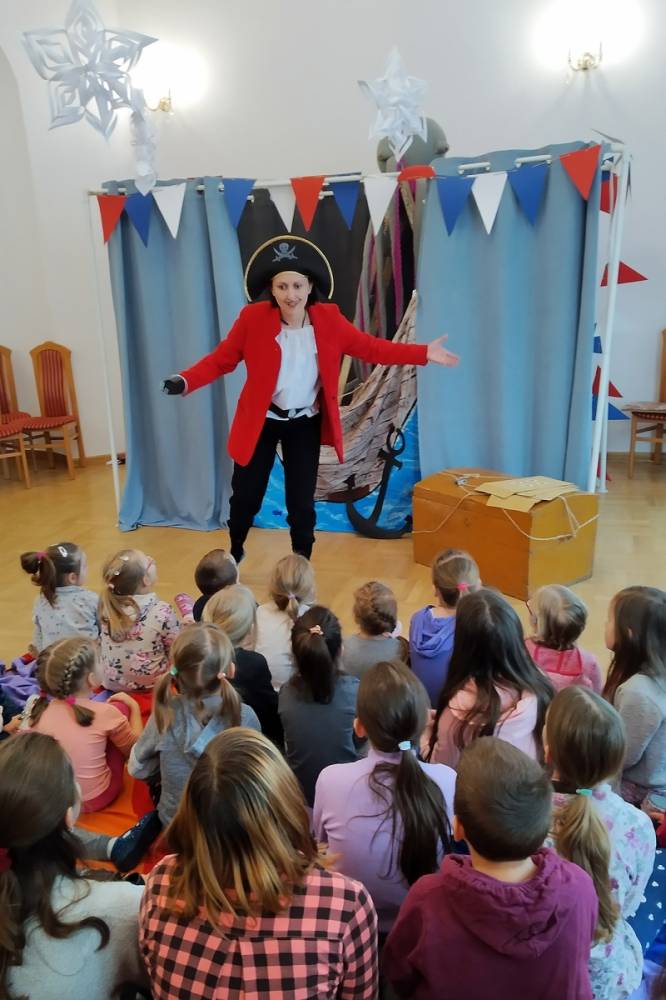 Podczas ferii odbyły się dwa spotkania z bajkowymi postaciami. Odwiedził nas teatr KTO TAM? ze Świdnika prezentując bajkę "Czerwony Kapturek" i przeprowadzając warsztaty teatralne. Natomiast w ramach "Bajkowych Spotkań" panie z Akademii „Aaa kuku” zabrały dzieci w pełną zabaw krainę Piotrusia Pana oraz Kapitana Haka.