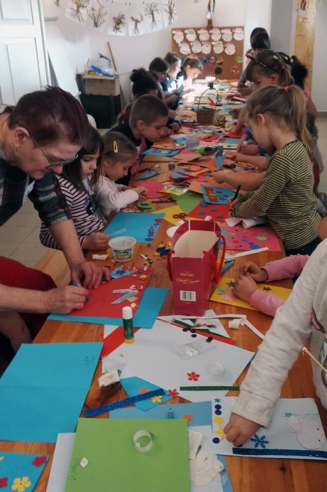 Uczestnicy brali udział w wielu zajęciach rękodzielniczych i manualnych, wykonywali m.in. eko-karmniki, które zawiesili na drzewach, laurki i kwiaty dla babci i dziadka, dekoracyjne gwiazdki oraz kolorowe kukiełki.