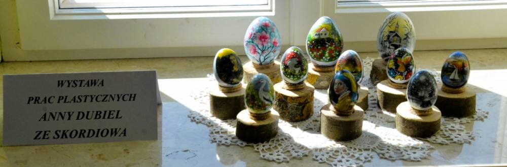 Cykl „Ludzie z pasją…”.Obecnie podziwiać można wystawę rękodzieła Pani Anny Dubiel ze Skordiowa .„Bo najważniejsze to sercem poczuć, a rękami zrobić”.