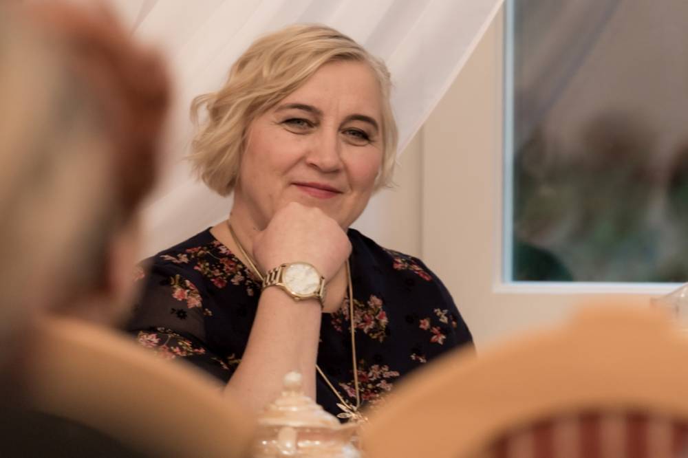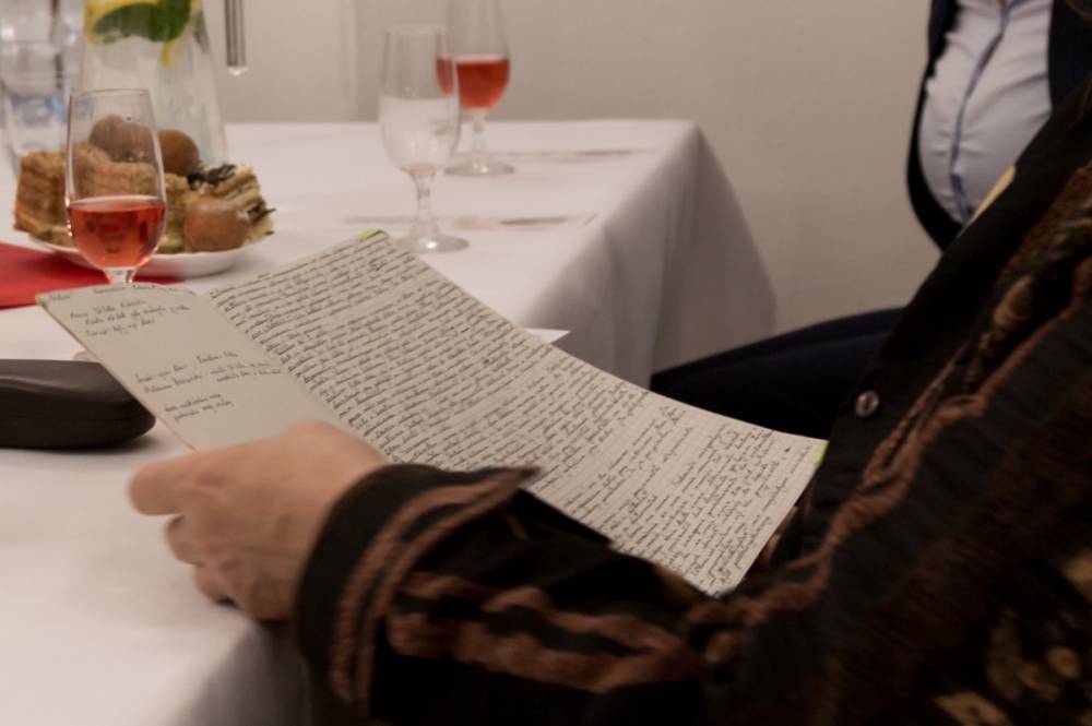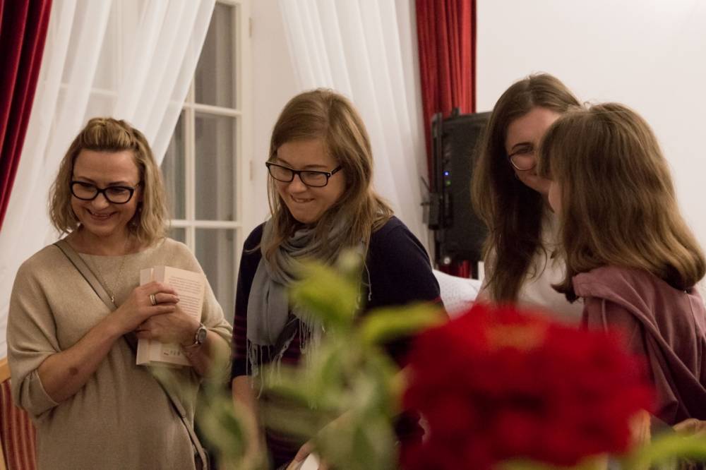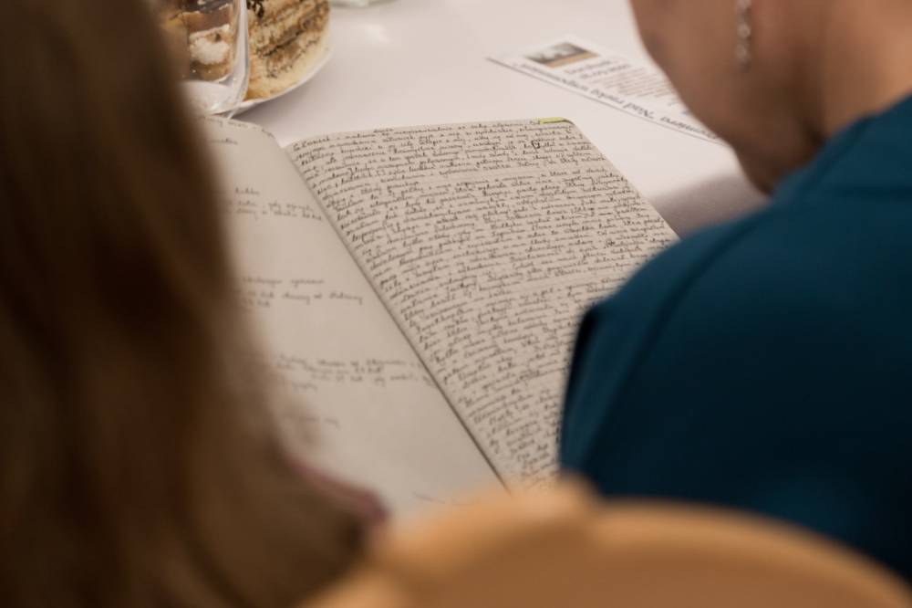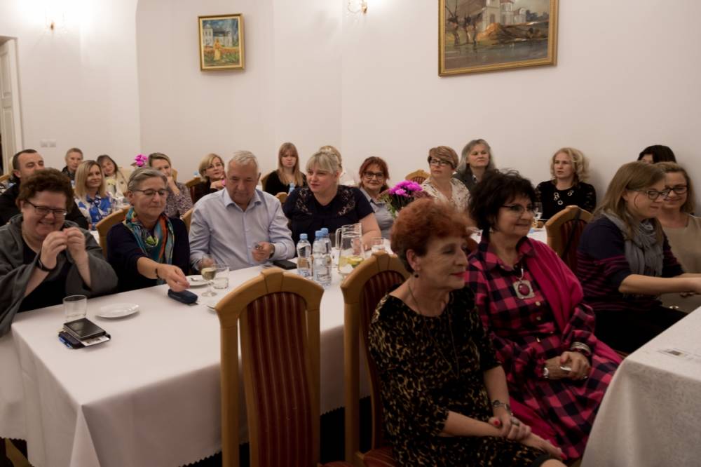 Zaskoczeniem dla uczestników były rękopisy powstałych książek pisane w zeszytach piórem, idealnym pismem, bez skreśleń i poprawek. Komputer pisarka wykorzystuje do kontaktu z czytelnikami: prowadzi blog http://magialiterczarslow.blogspot.com/ oraz stronę autorską na facebookowym fanpage, gdzie pisze ,, Myśli do kawy”.