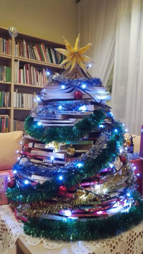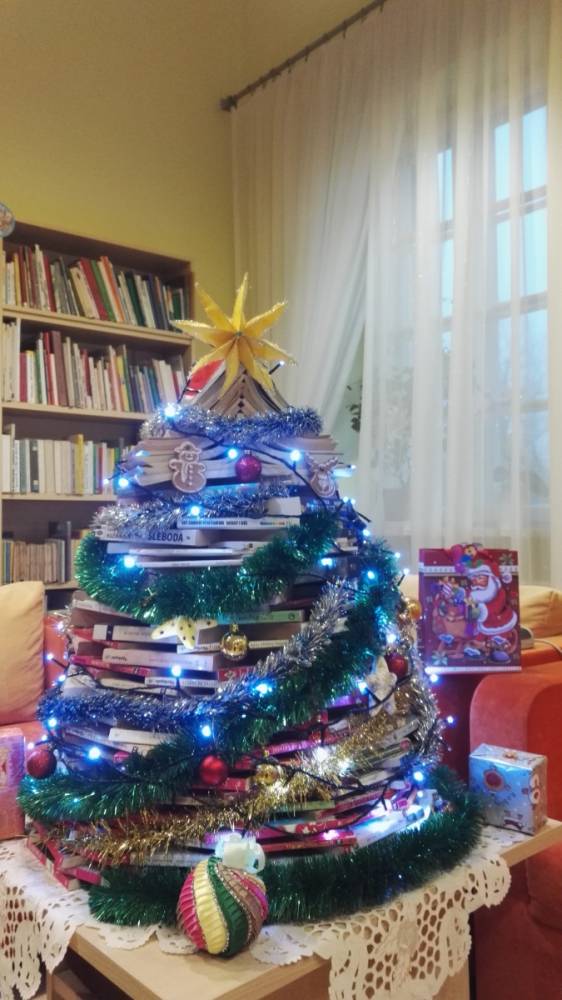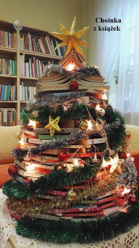 - Żeby tradycji stało się zadość, choince urody dodają także lampki i inne świąteczne ozdoby, a pomysł budowania nietypowego drzewka narodził się w 2017 roku. Okazał się udany, a choinka nie dość, że pięknie przyozdobiła wnętrze biblioteki to jeszcze tak spodobała się czytelnikom, że w tym roku znowu stanęła w naszej placówce.