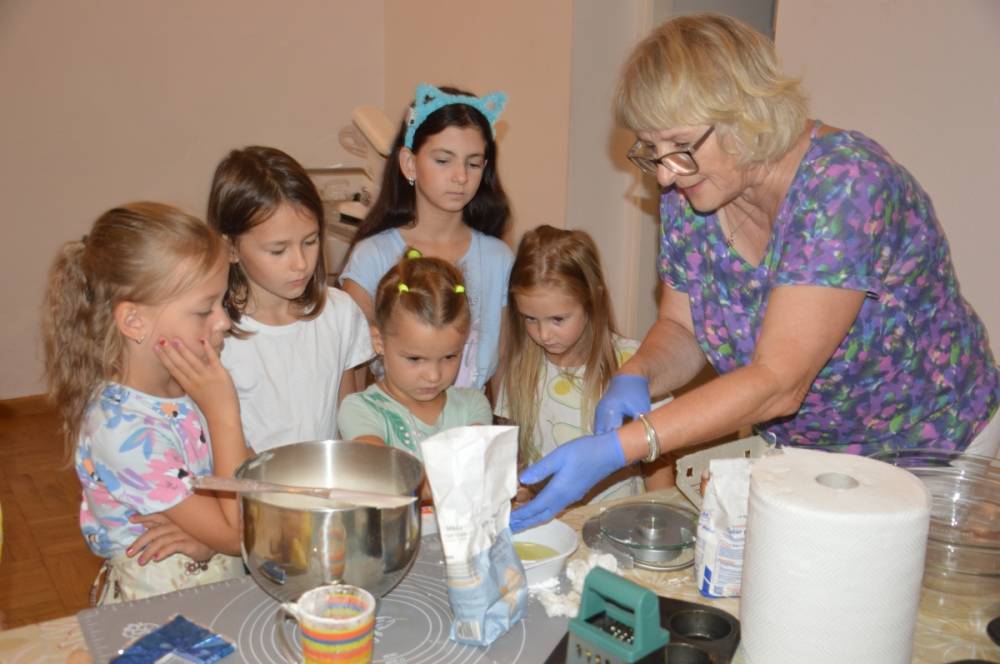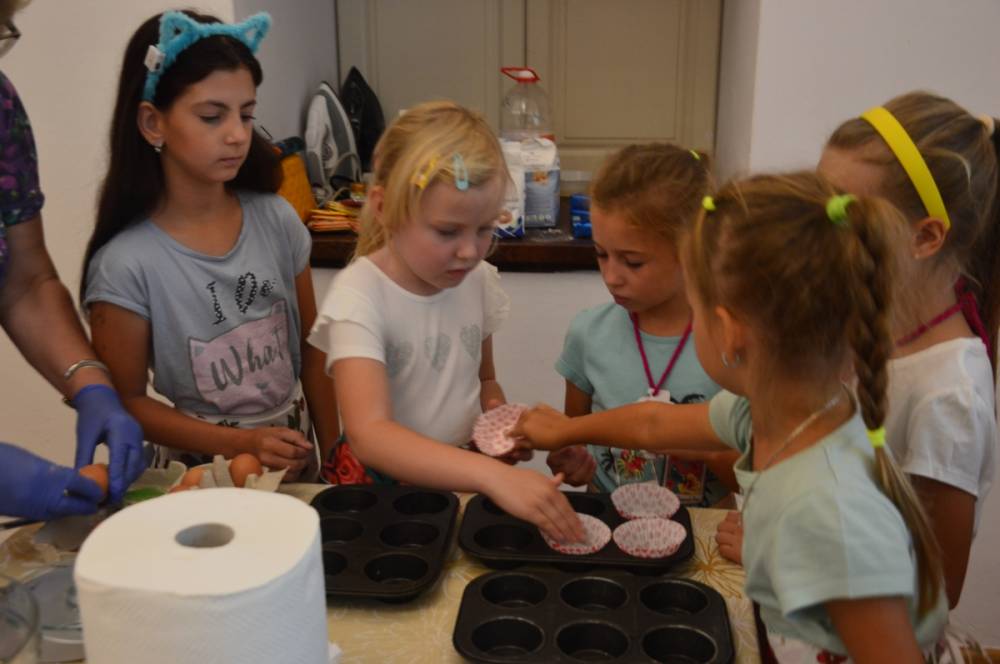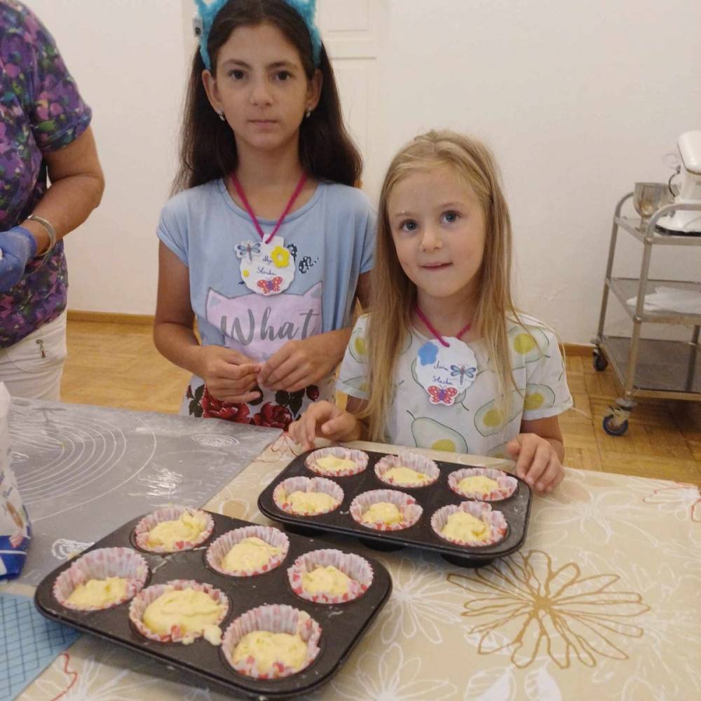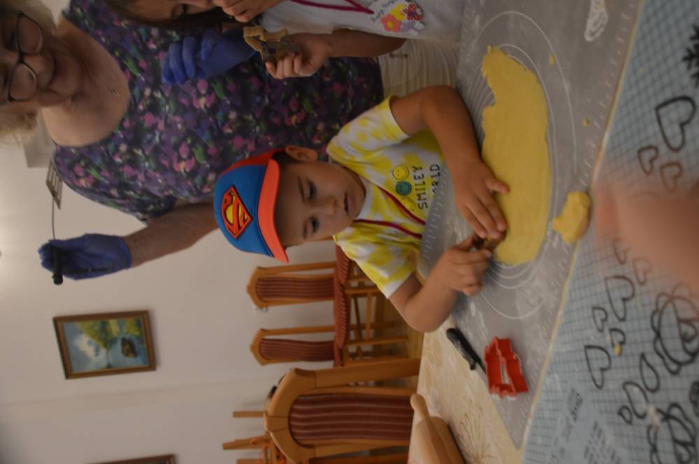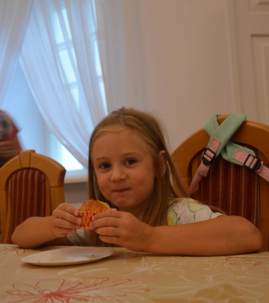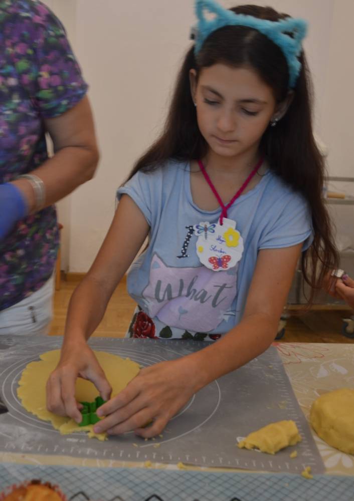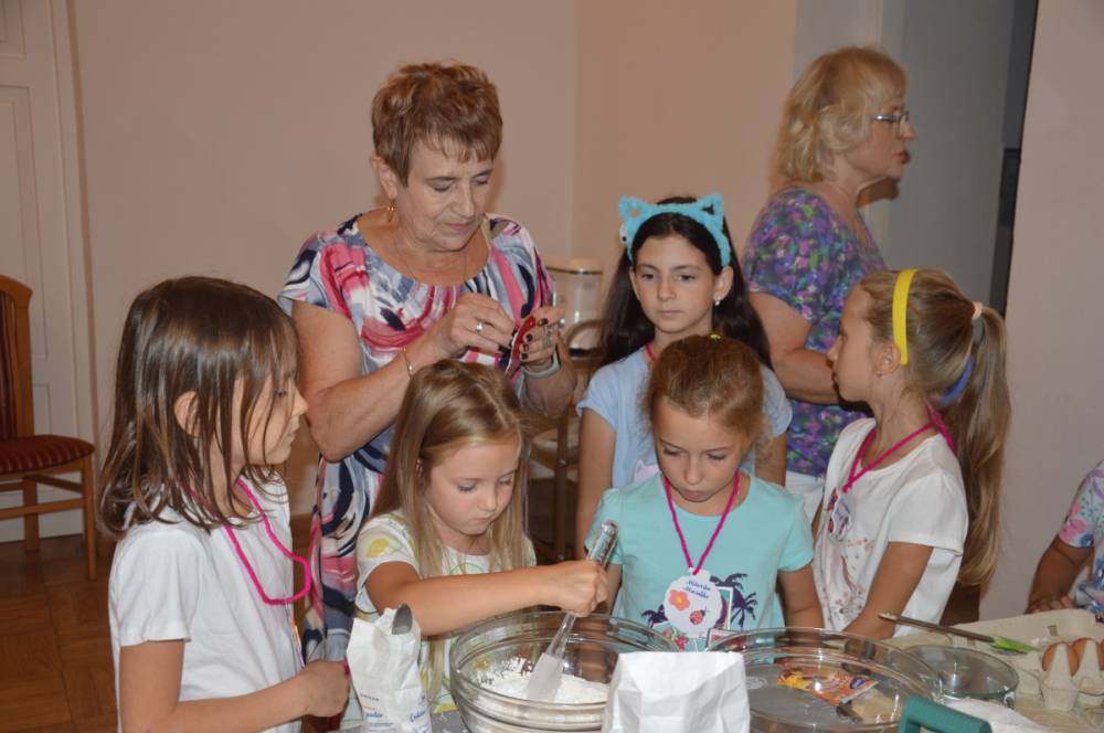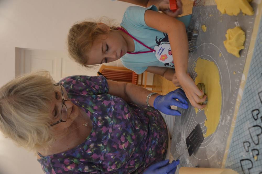 Pierwszego dnia „Wakacji z Biblioteką 2024” odbyły się warsztaty kulinarne. Na zajęciach robiono kruche ciasteczka i mufinki. Mali uczestnicy warsztatów pod okiem Pani Wandy wałkowali ciasto, a następnie wycinali je foremkami. Serduszka, jeżyki, zajączki, listki i inne kształty trafiały na blaszkę i do piekarnika. Dzieci mogły skosztować swoich wypieków tuż po ich upieczeniu, ale także poczęstować nimi domowników po powrocie do domu. Powstawały również przepiękne budowle z klocków.