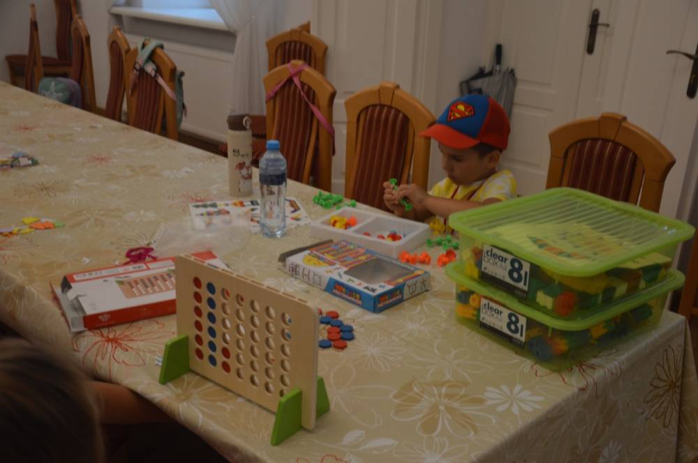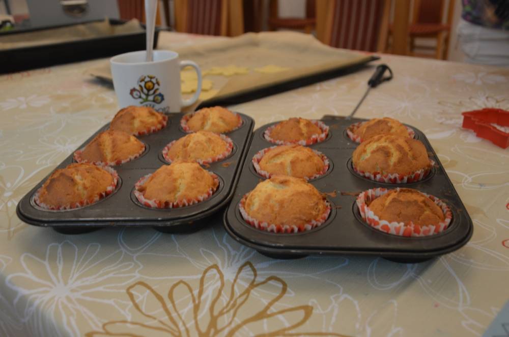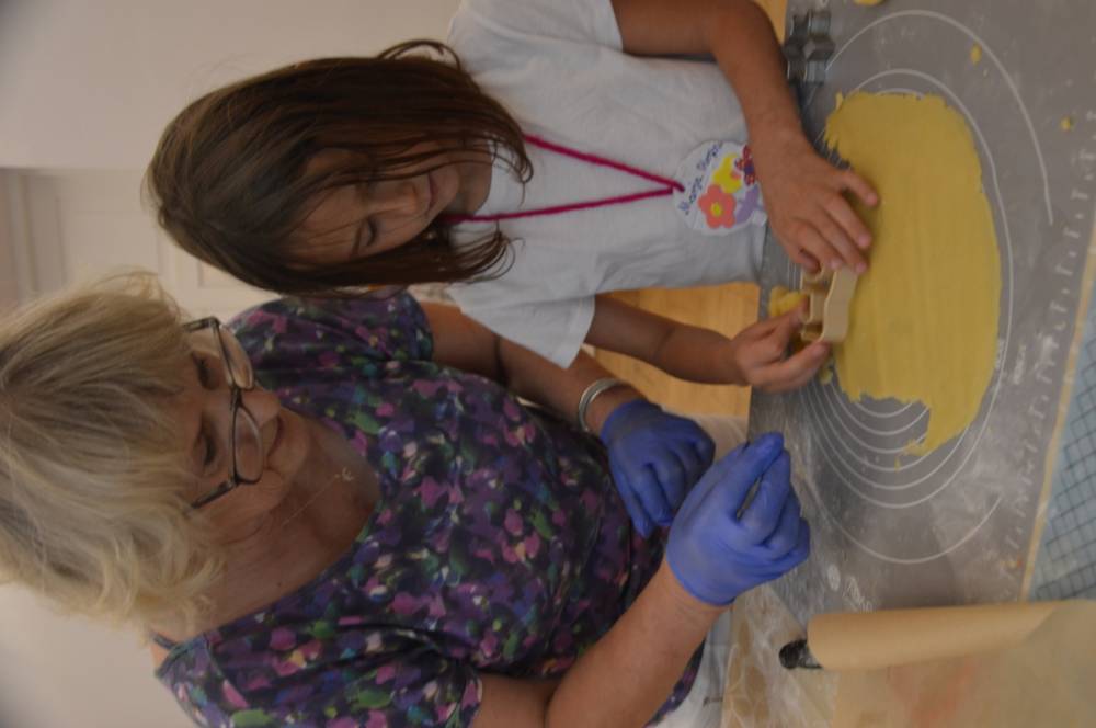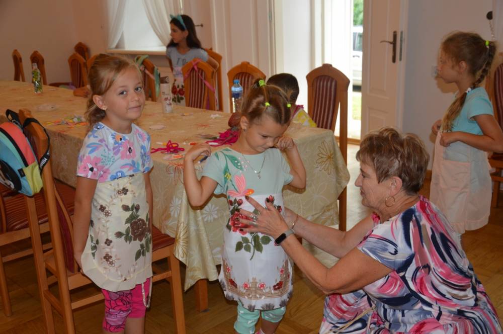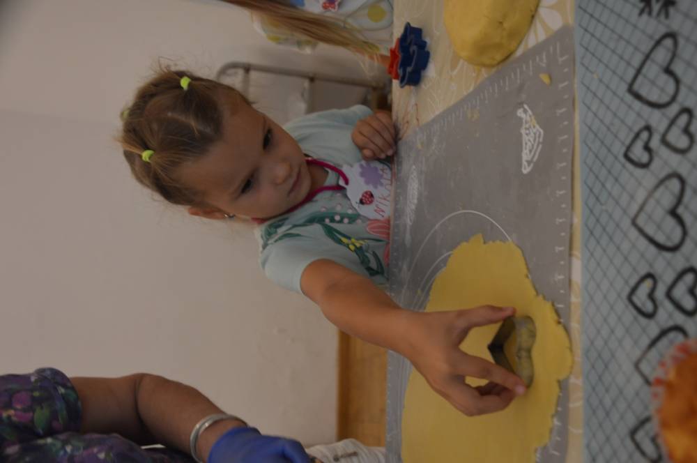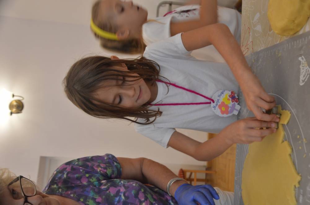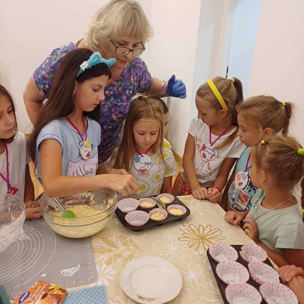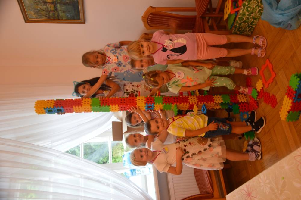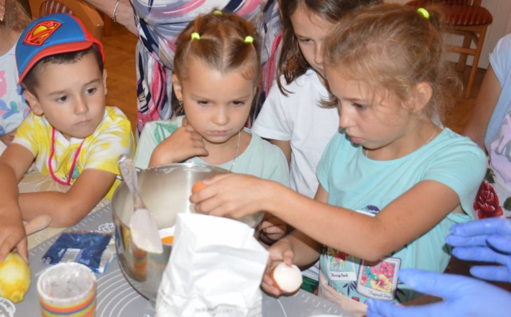 Pierwszego dnia „Wakacji z Biblioteką 2024” odbyły się warsztaty kulinarne. Na zajęciach robiono kruche ciasteczka i mufinki. Mali uczestnicy warsztatów pod okiem Pani Wandy wałkowali ciasto, a następnie wycinali je foremkami. Serduszka, jeżyki, zajączki, listki i inne kształty trafiały na blaszkę i do piekarnika. Dzieci mogły skosztować swoich wypieków tuż po ich upieczeniu, ale także poczęstować nimi domowników po powrocie do domu. Powstawały również przepiękne budowle z klocków.